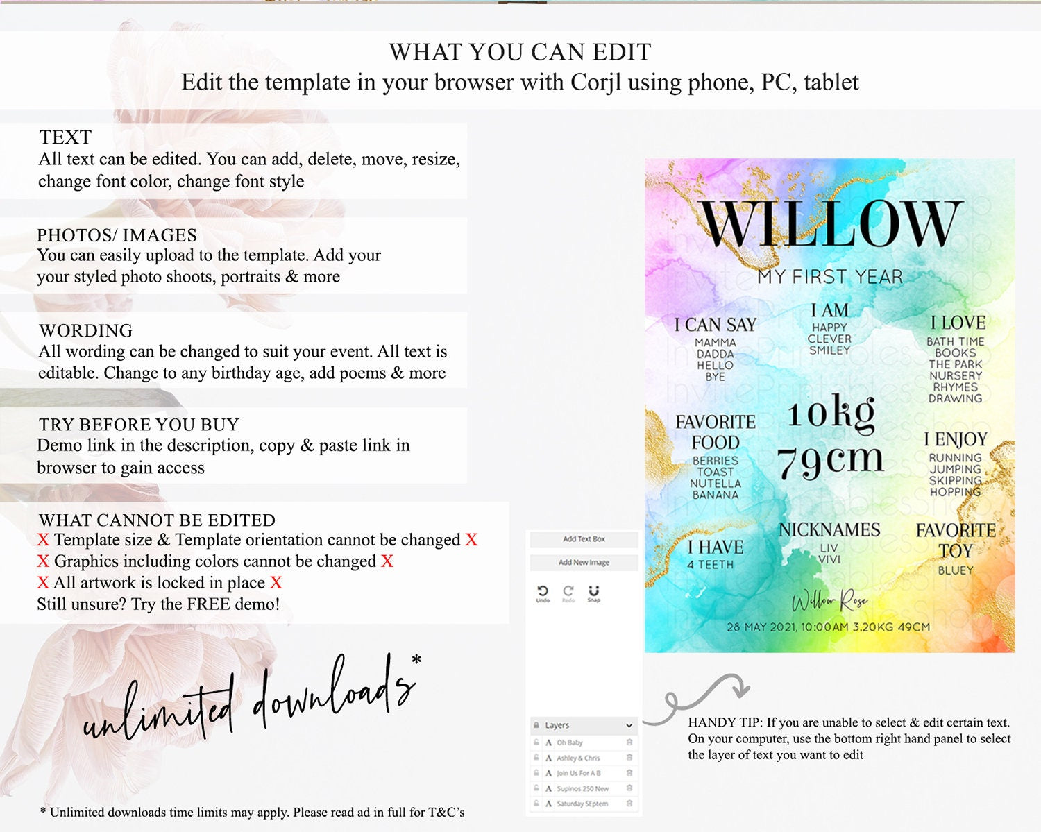 • After purchase, Corjl emails your editing link. Allow up to 15 minutes for delivery.