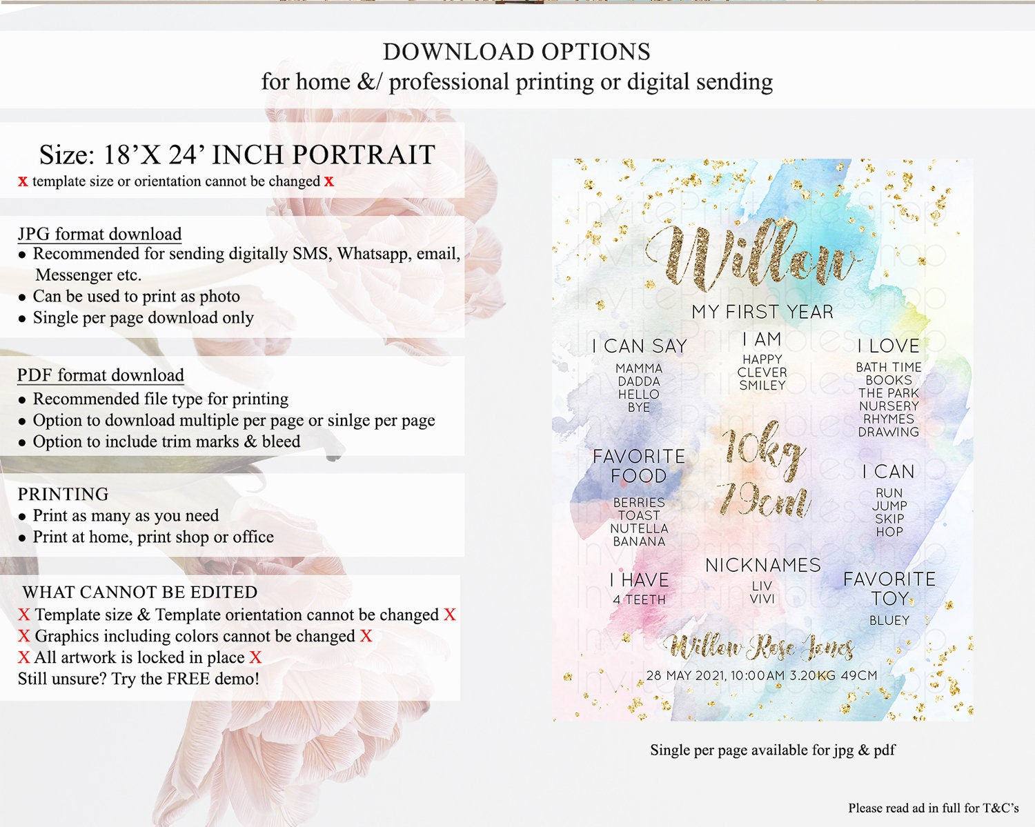 • Template size & orientation cannot be changed. Please use the demo link to confirm this product suits your needs.
