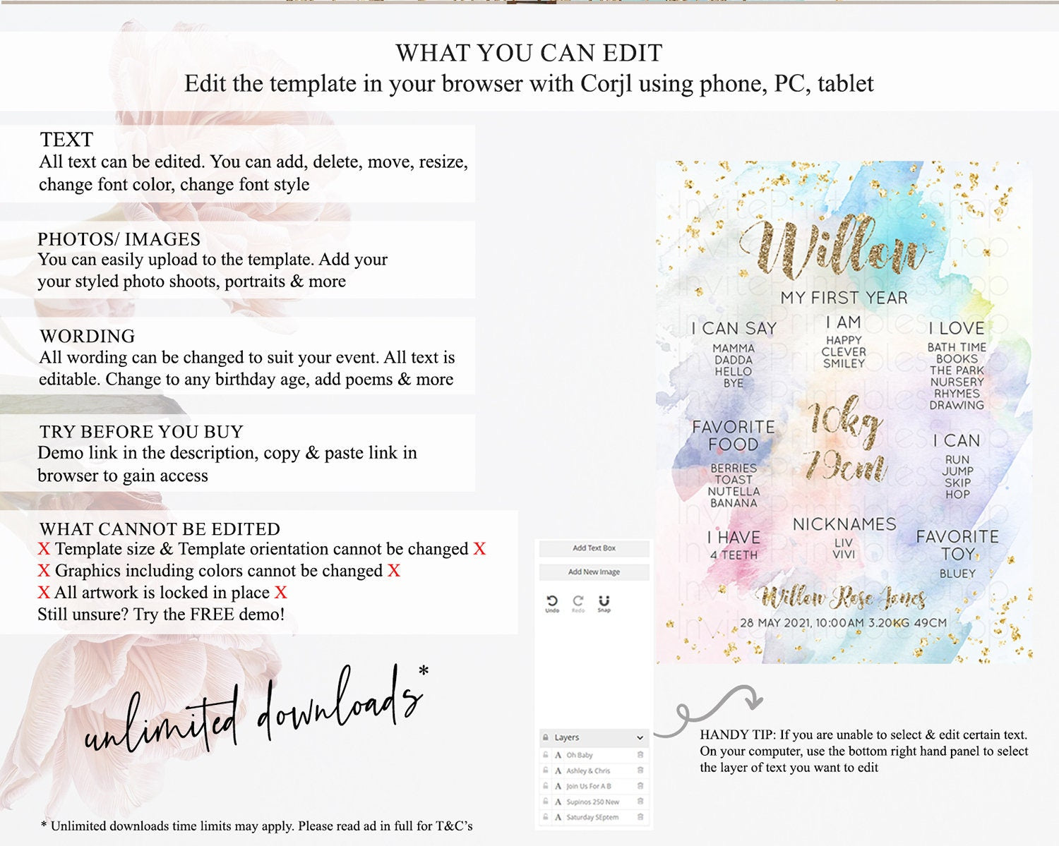 • After purchase, Corjl emails your editing link. Allow up to 15 minutes for delivery.