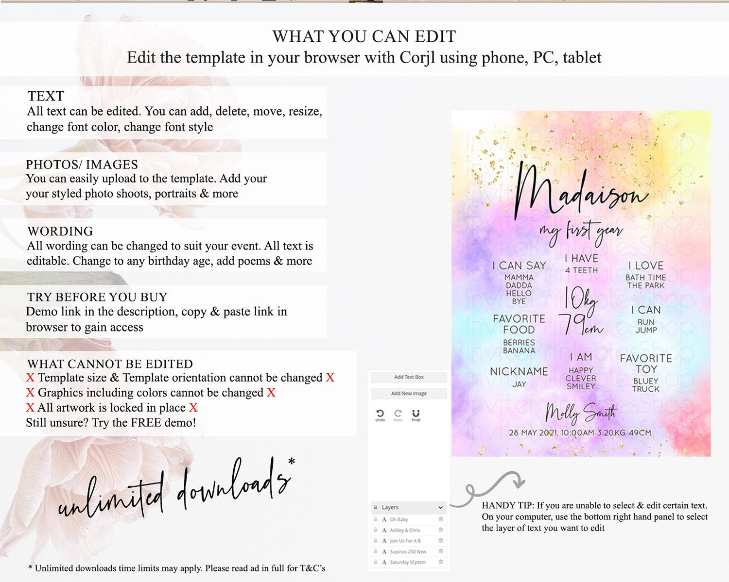 • After purchase, Corjl emails your editing link. Allow up to 15 minutes for delivery.