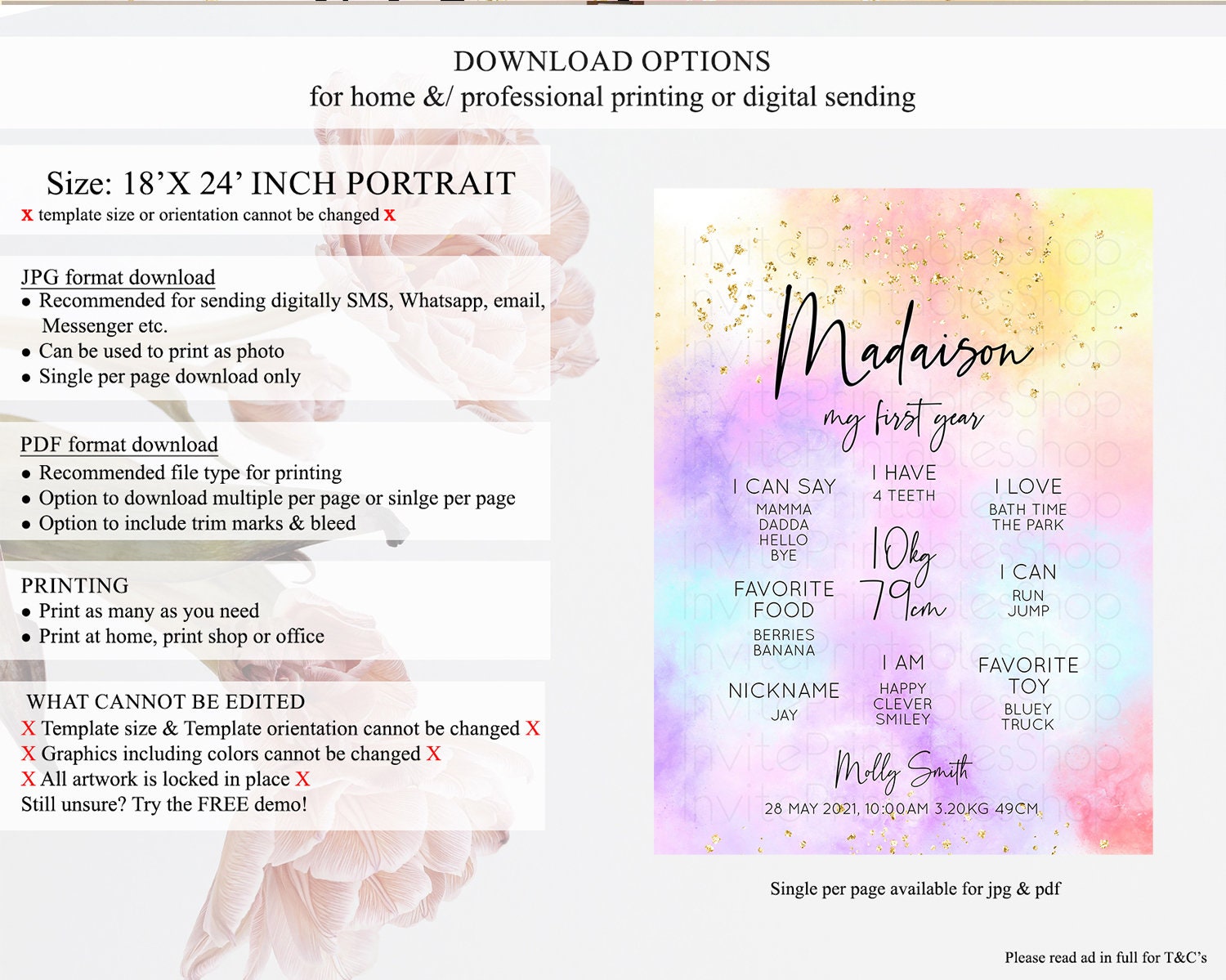 • Template size & orientation cannot be changed. Please use the demo link to confirm this product suits your needs.