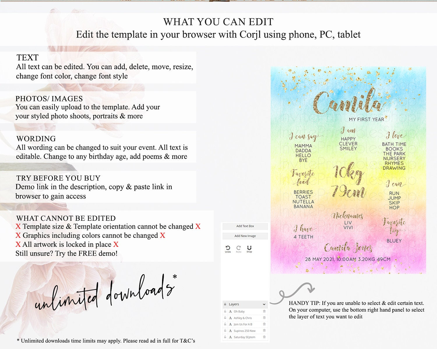 • After purchase, Corjl emails your editing link. Allow up to 15 minutes for delivery.