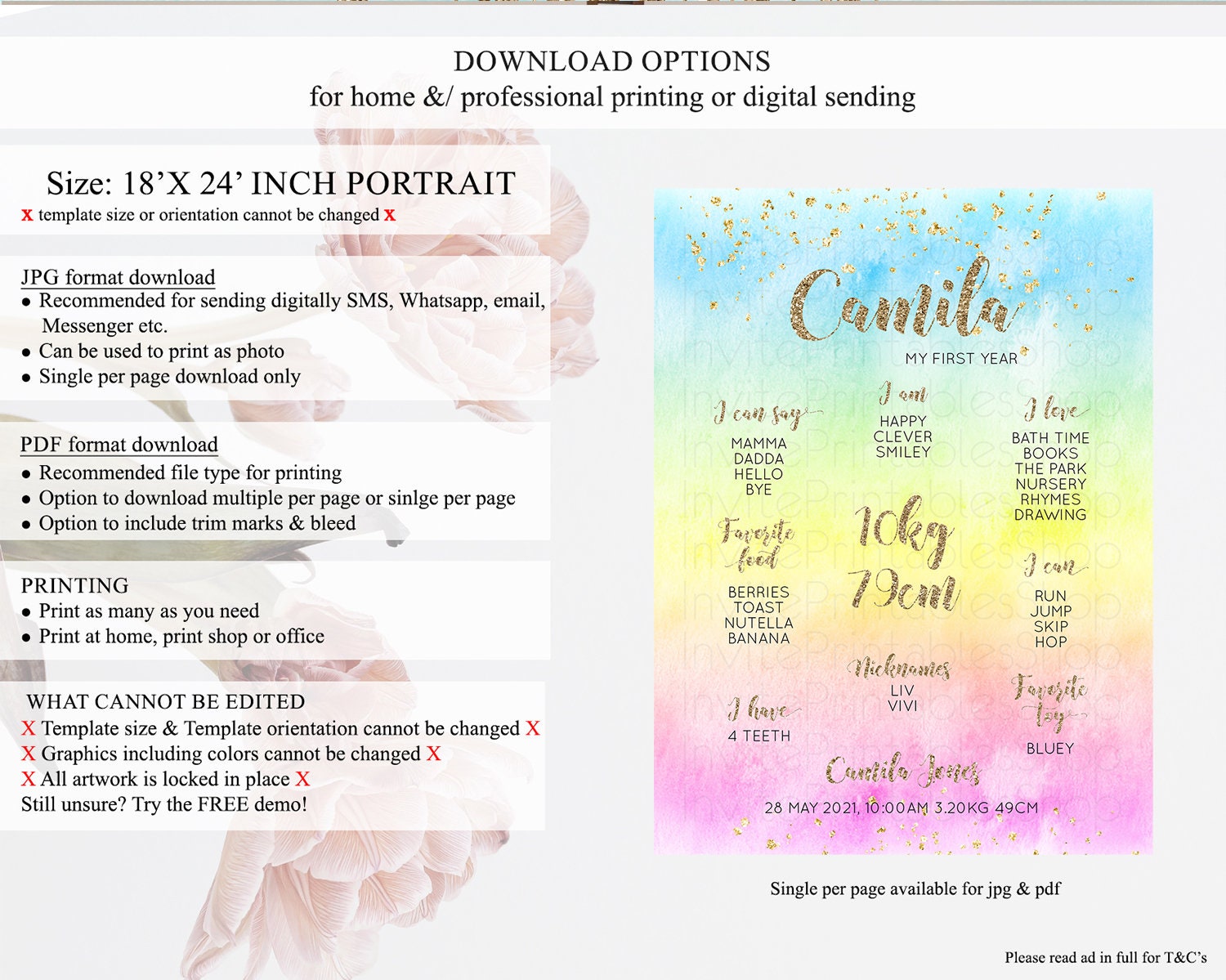 • Template size & orientation cannot be changed. Please use the demo link to confirm this product suits your needs.