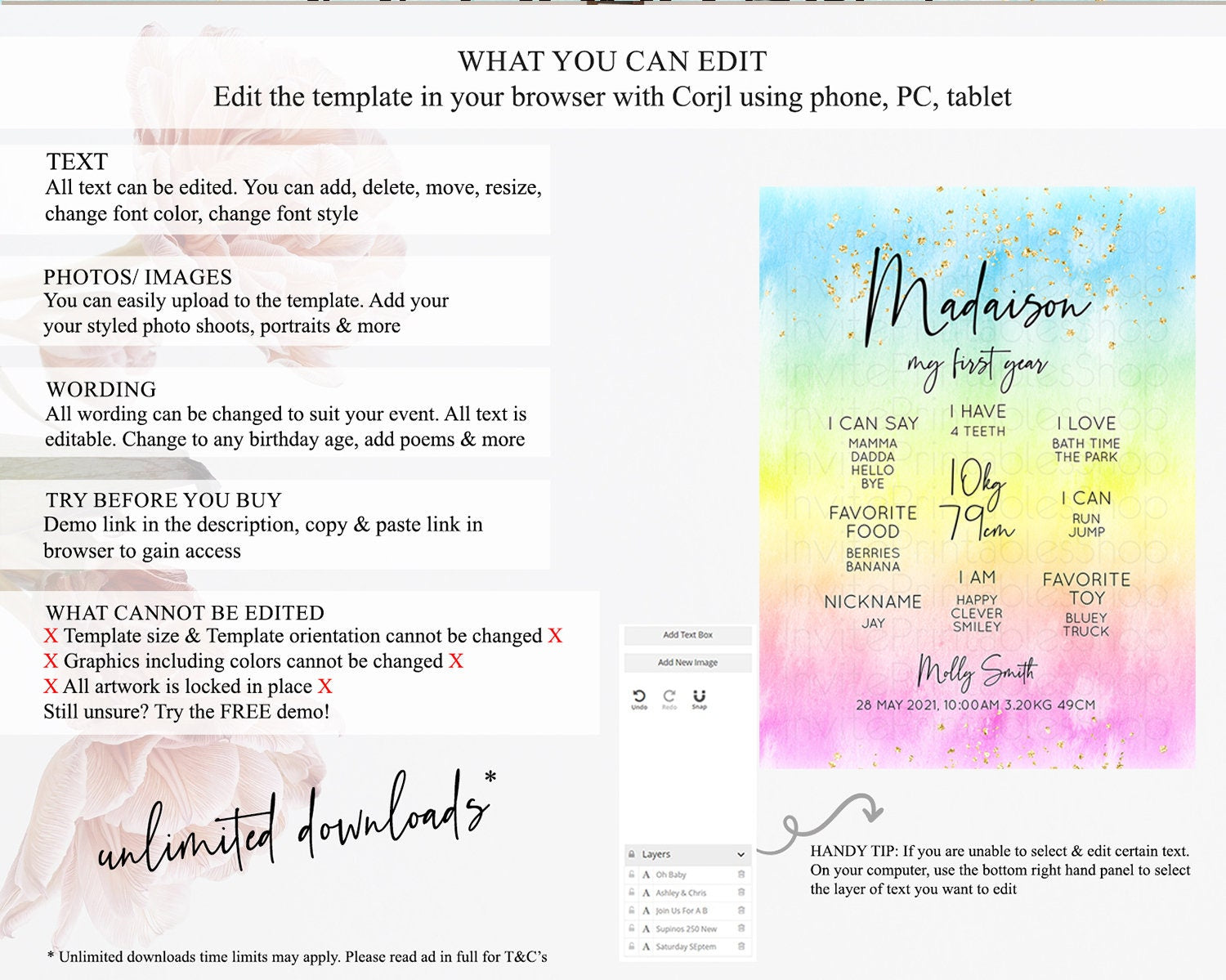 • After purchase, Corjl emails your editing link. Allow up to 15 minutes for delivery.