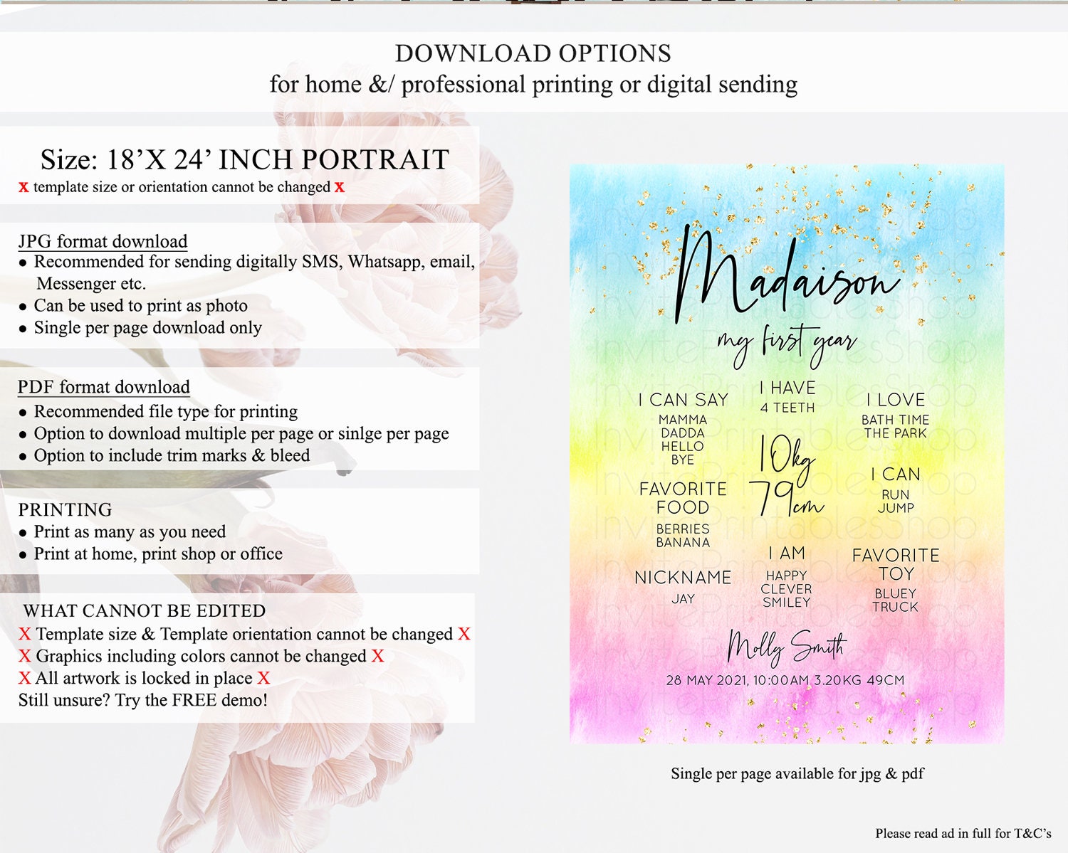 • Template size & orientation cannot be changed. Please use the demo link to confirm this product suits your needs.
