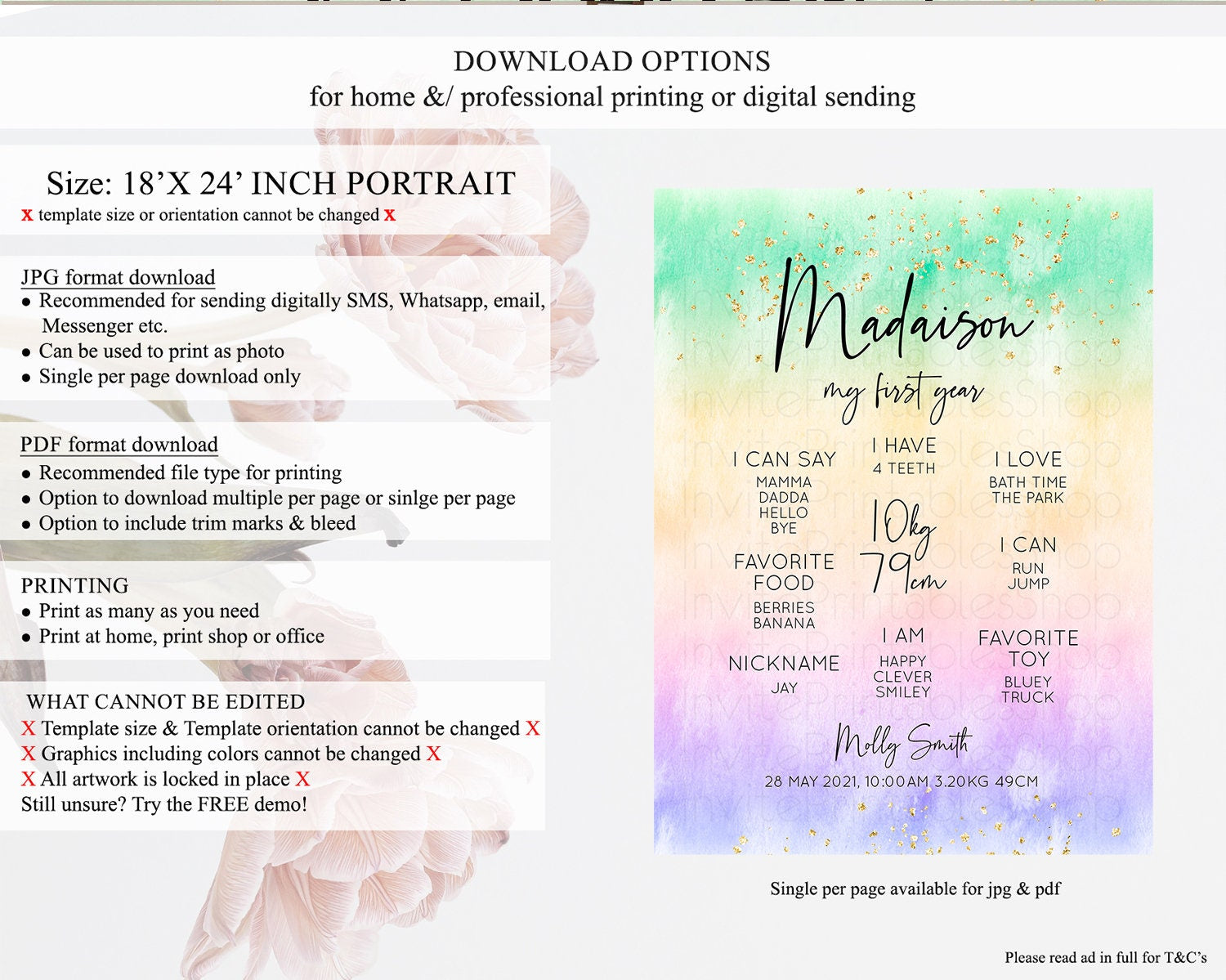 • Template size & orientation cannot be changed. Please use the demo link to confirm this product suits your needs.