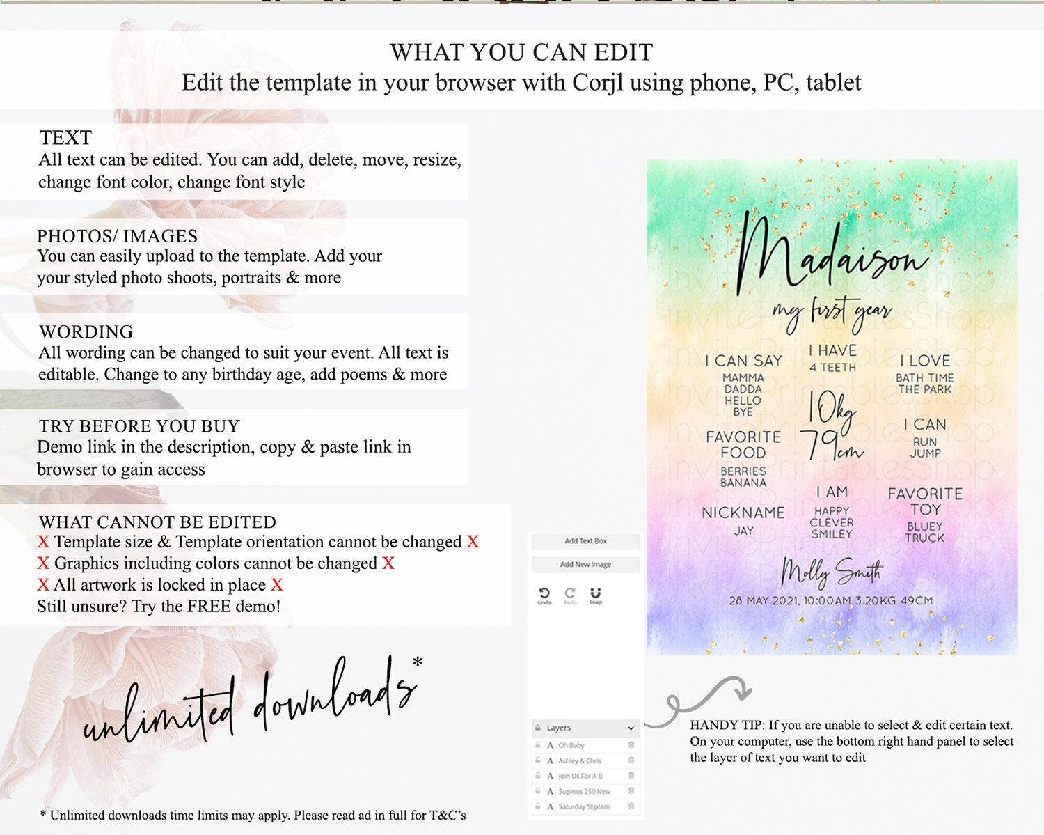 • After purchase, Corjl emails your editing link. Allow up to 15 minutes for delivery.
