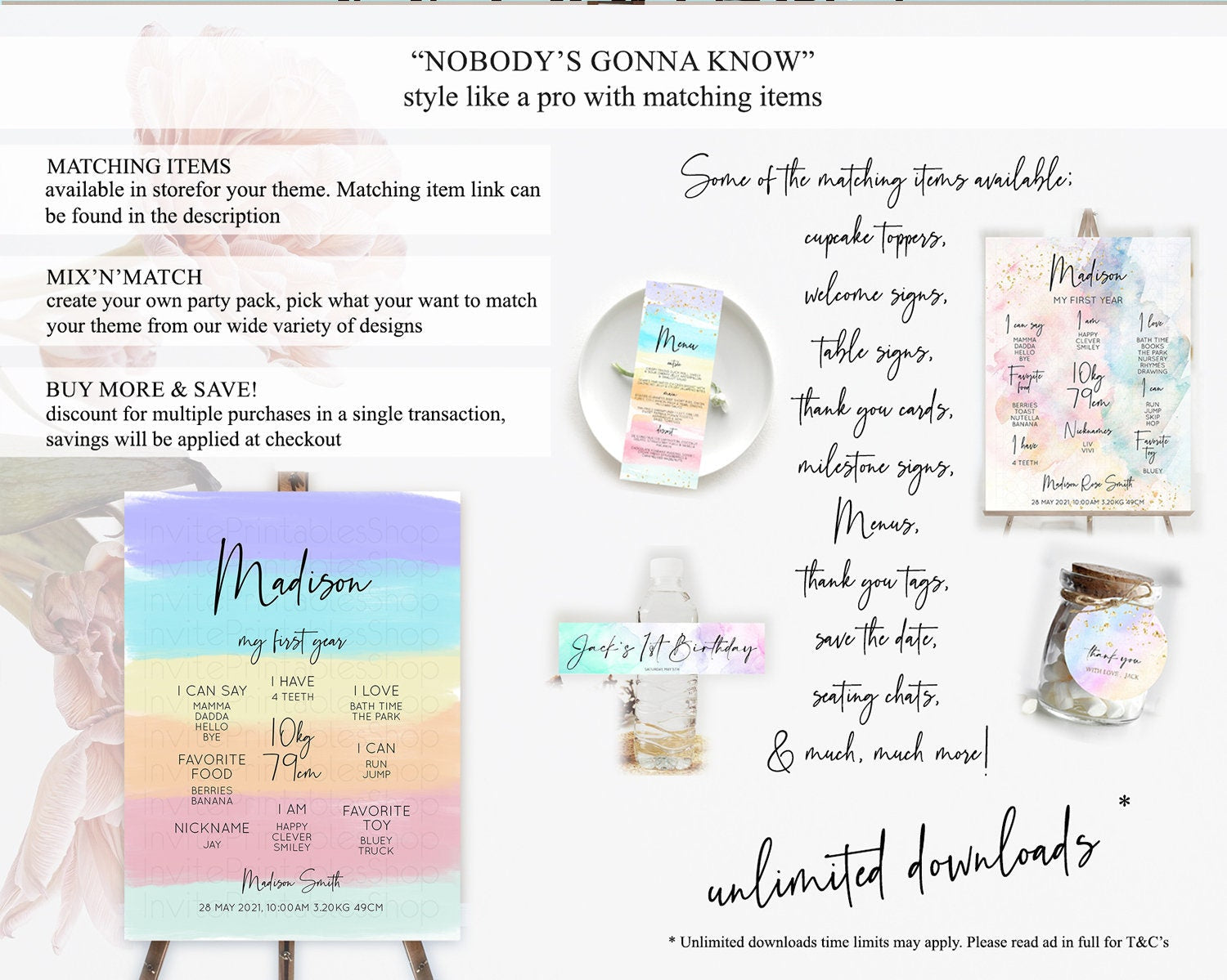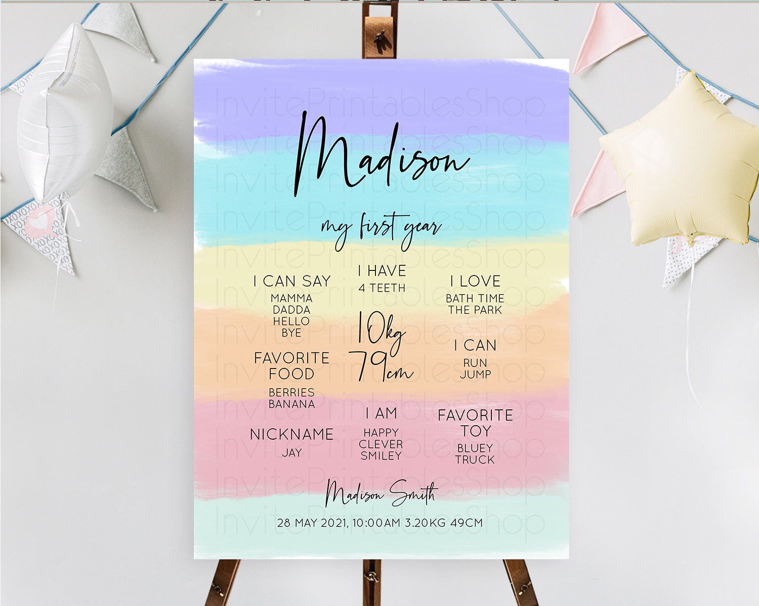 Pastel First Birthday Milestone Board Pastel Rainbow Milestone Poster Colorful Confetti Watercolor Glitter 1st Birthday Welcome Sign D10510