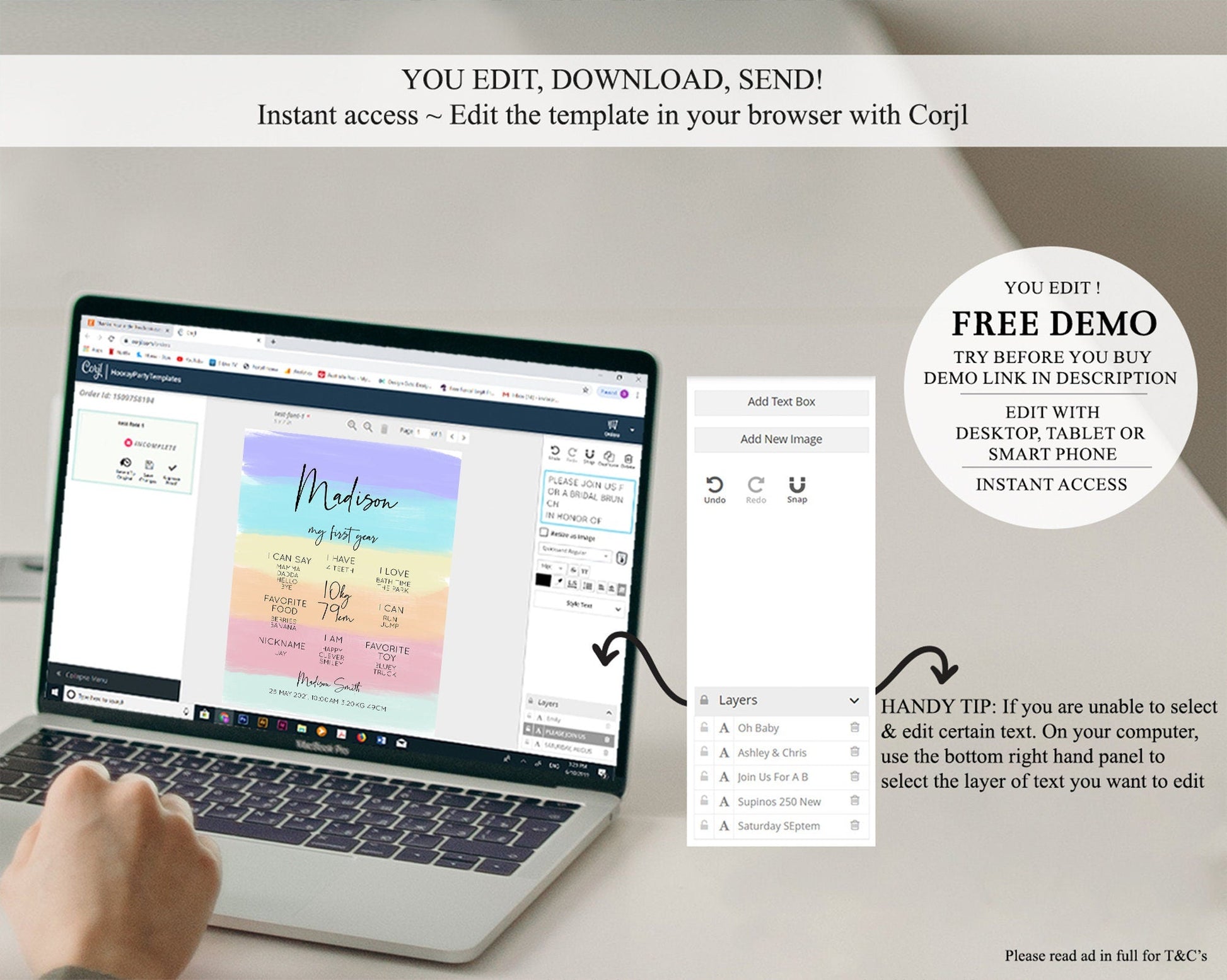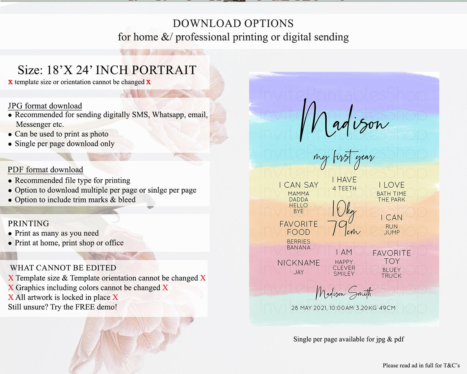• Template size & orientation cannot be changed. Please use the demo link to confirm this product suits your needs.