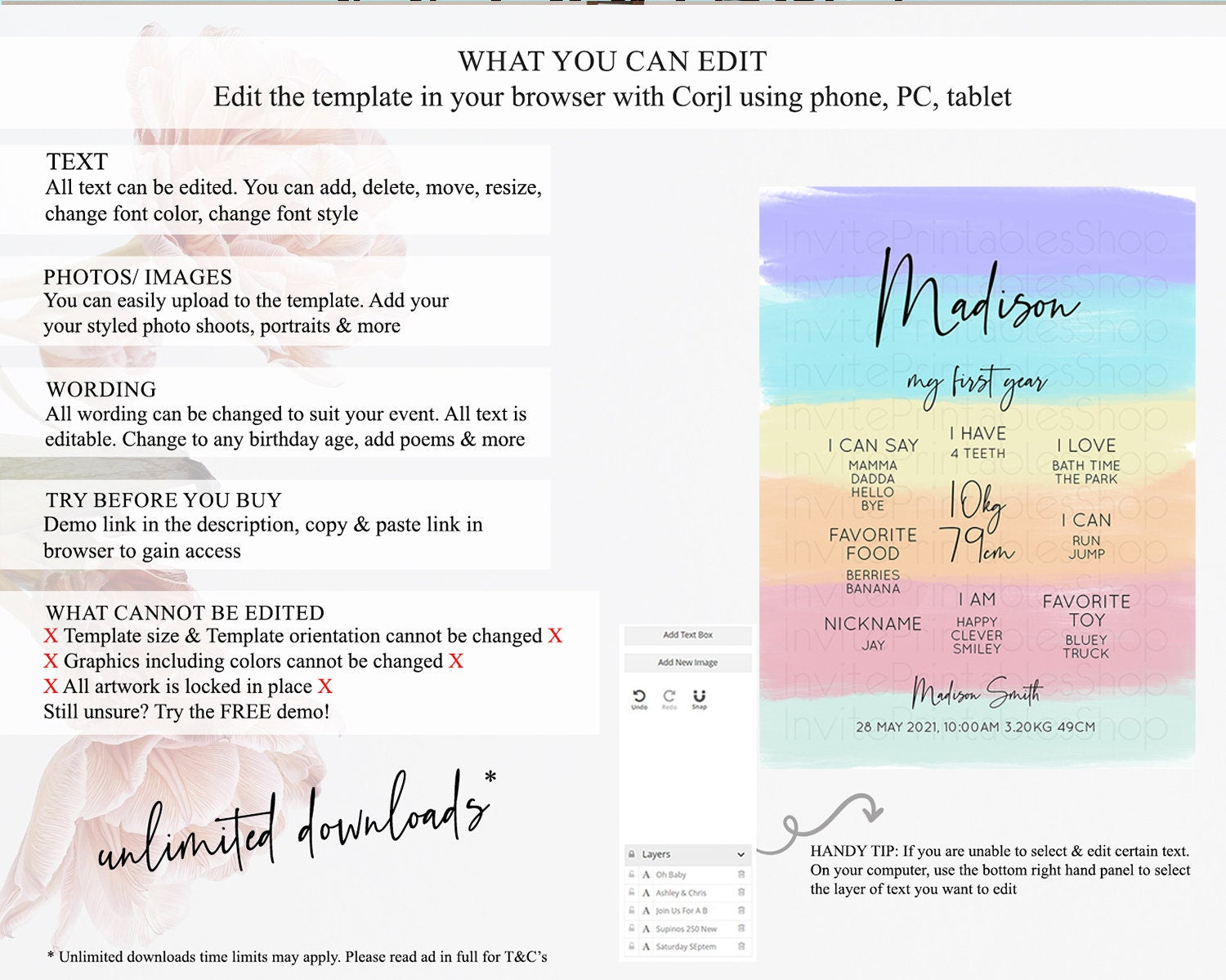 • After purchase, Corjl emails your editing link. Allow up to 15 minutes for delivery.