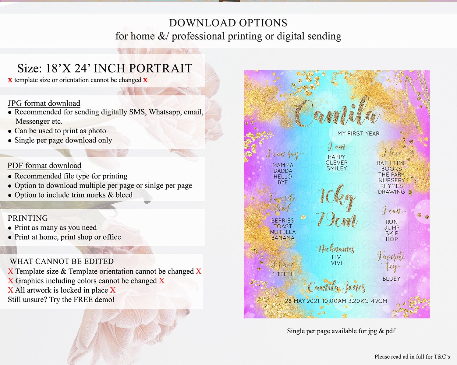 • Template size & orientation cannot be changed. Please use the demo link to confirm this product suits your needs.