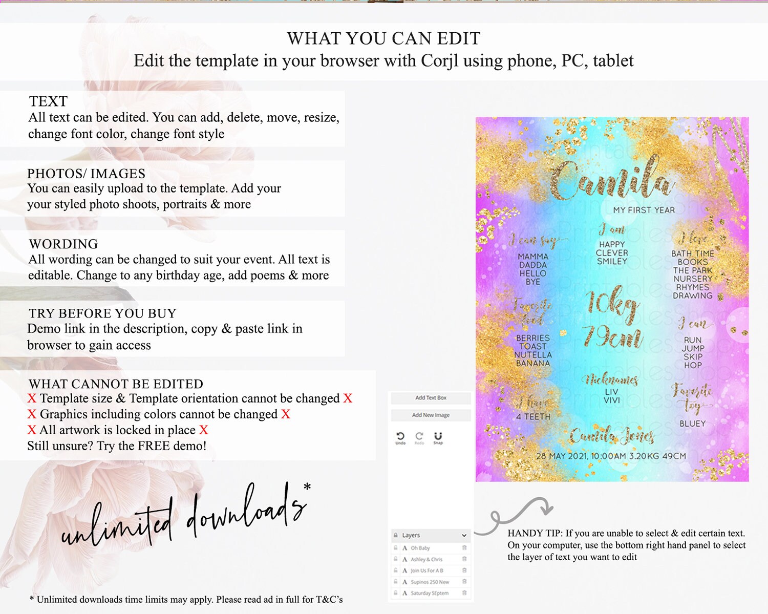 • After purchase, Corjl emails your editing link. Allow up to 15 minutes for delivery.