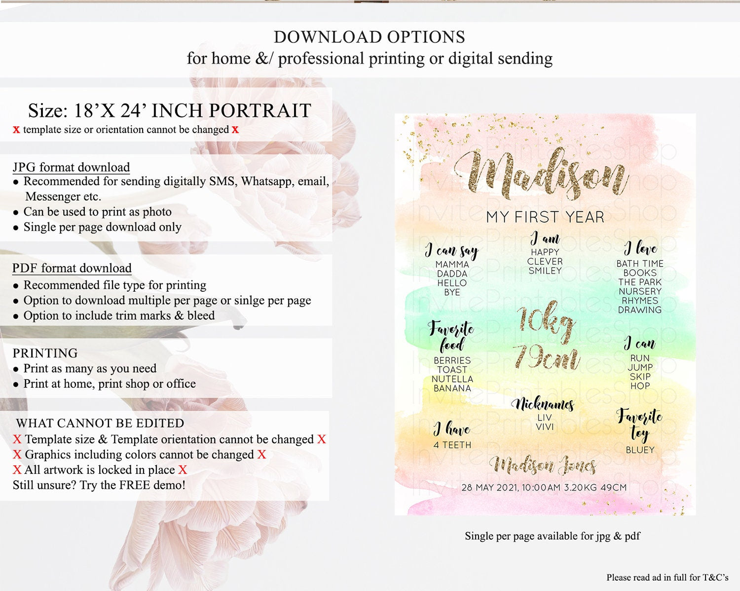 • Template size & orientation cannot be changed. Please use the demo link to confirm this product suits your needs.