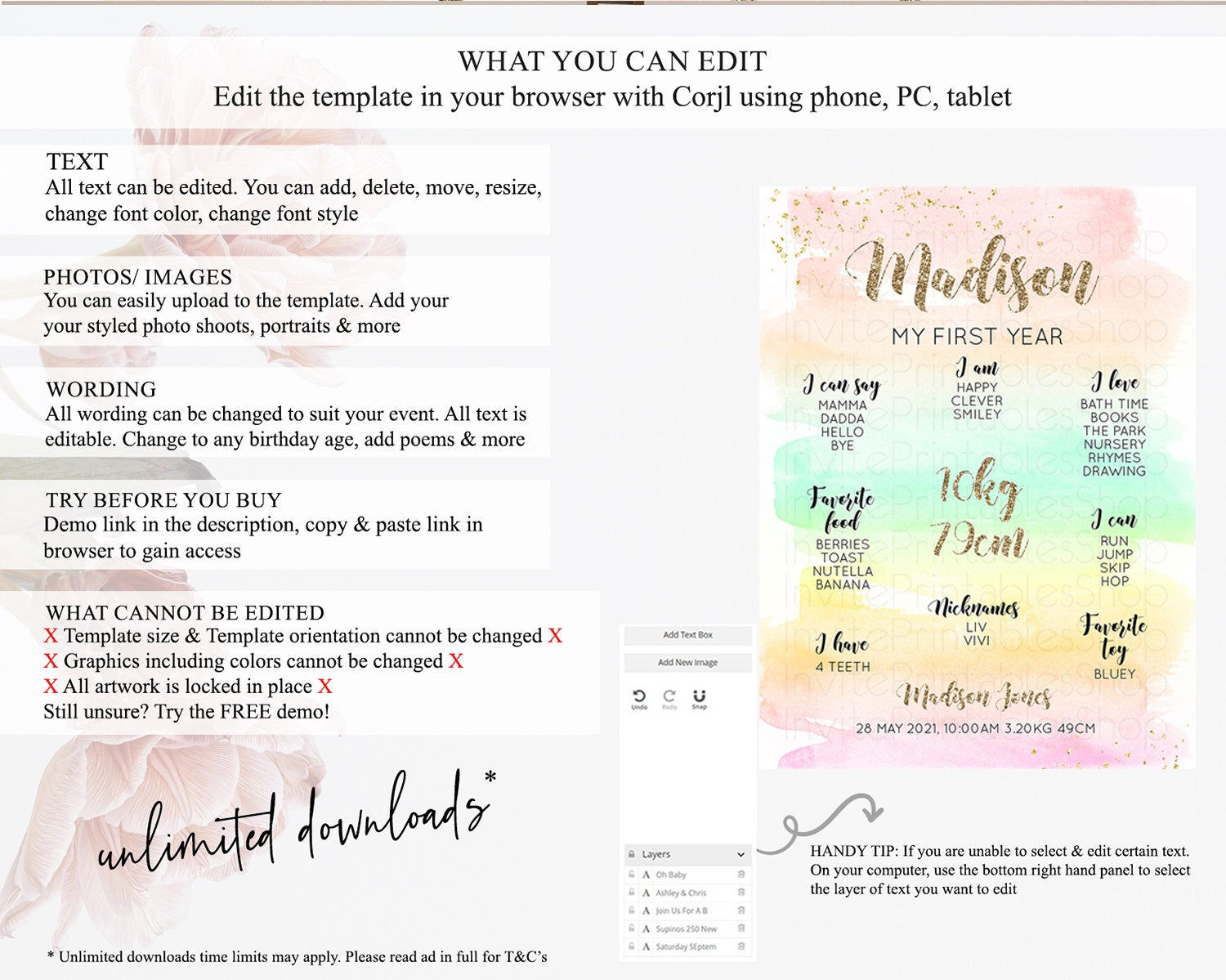 • After purchase, Corjl emails your editing link. Allow up to 15 minutes for delivery.