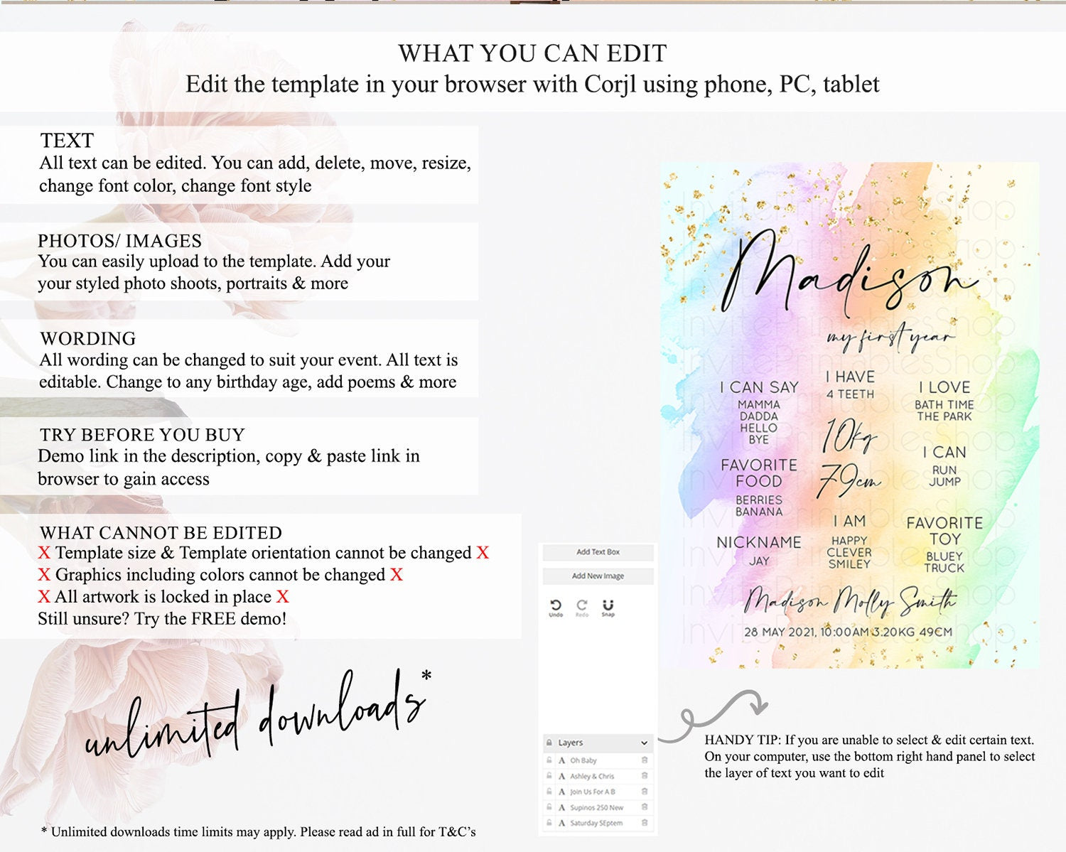 • After purchase, Corjl emails your editing link. Allow up to 15 minutes for delivery.
