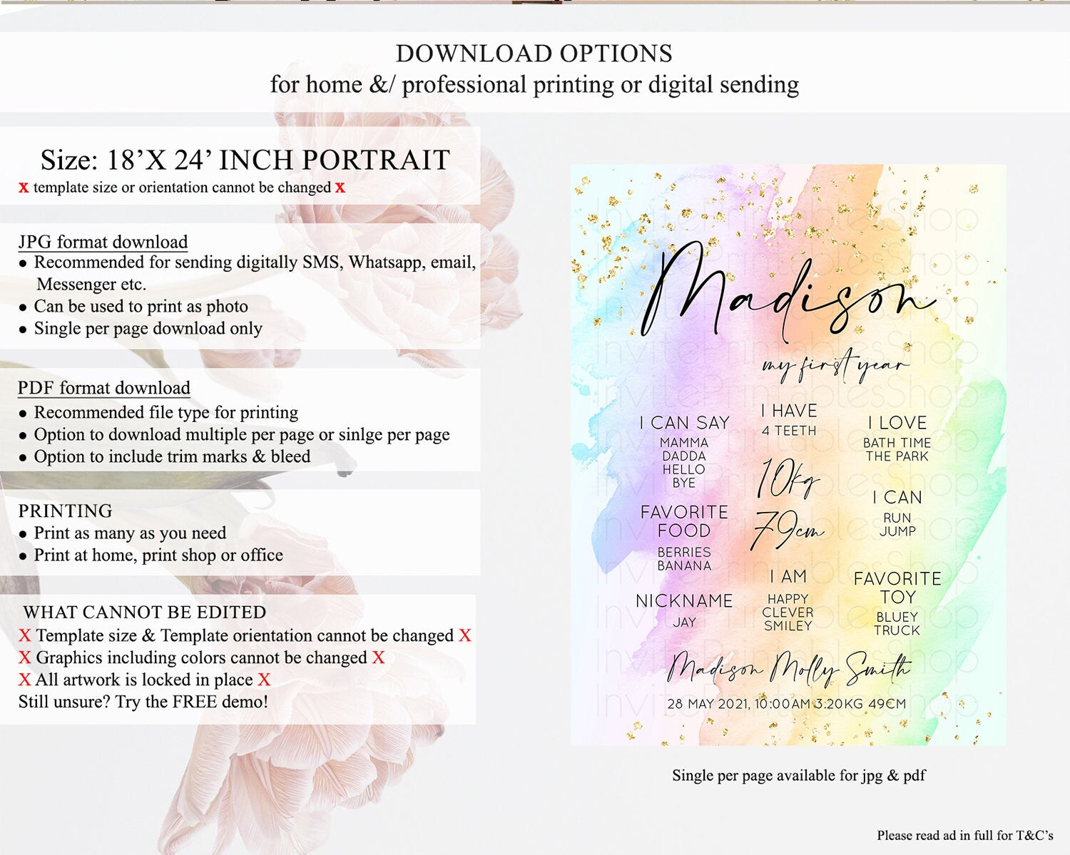 • Template size & orientation cannot be changed. Please use the demo link to confirm this product suits your needs.