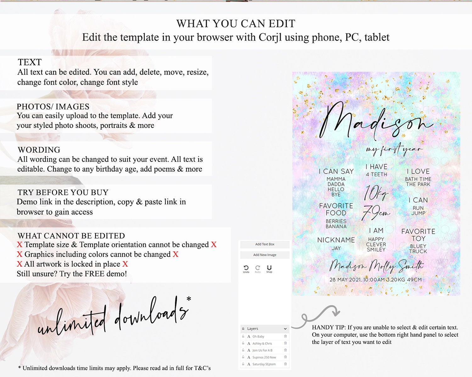 • After purchase, Corjl emails your editing link. Allow up to 15 minutes for delivery.