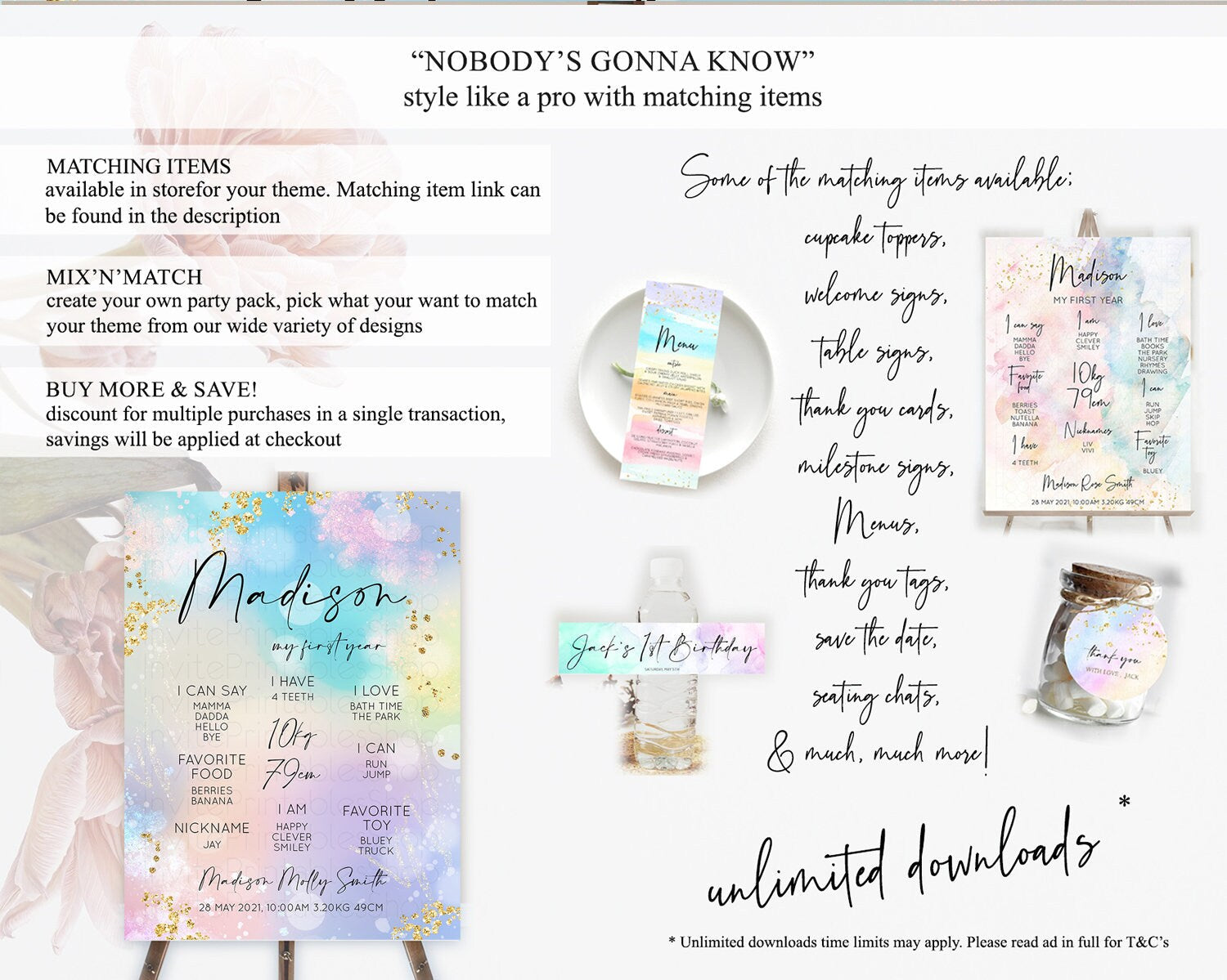 Pastel First Birthday Milestone Board Pastel Rainbow Milestone Poster Colorful Confetti Watercolor Glitter 1st Birthday Welcome Sign D10675