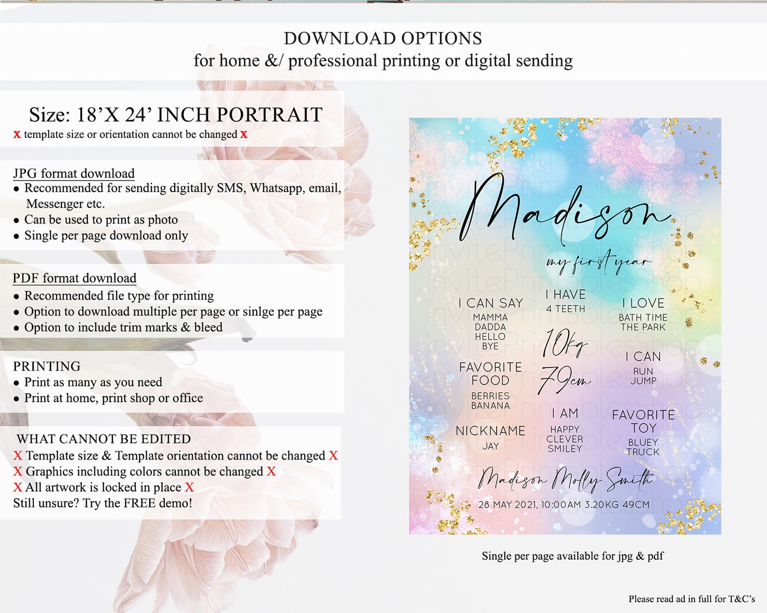 • Template size & orientation cannot be changed. Please use the demo link to confirm this product suits your needs.