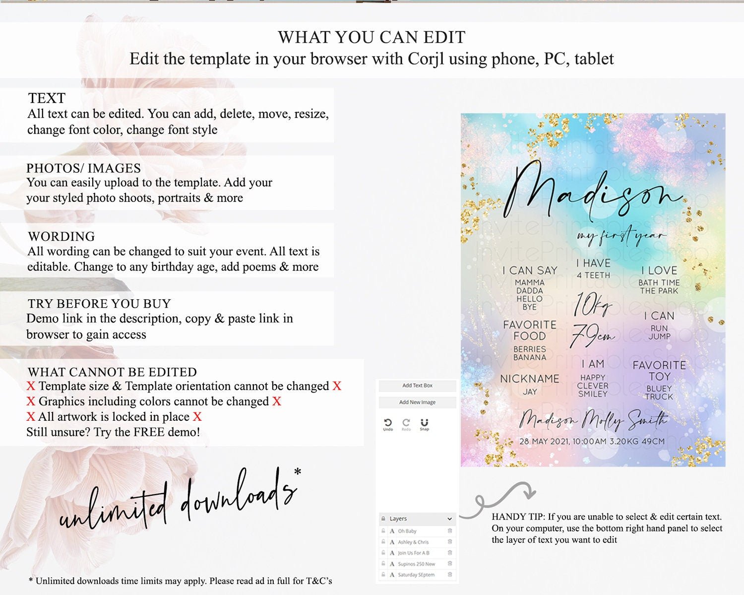 • After purchase, Corjl emails your editing link. Allow up to 15 minutes for delivery.