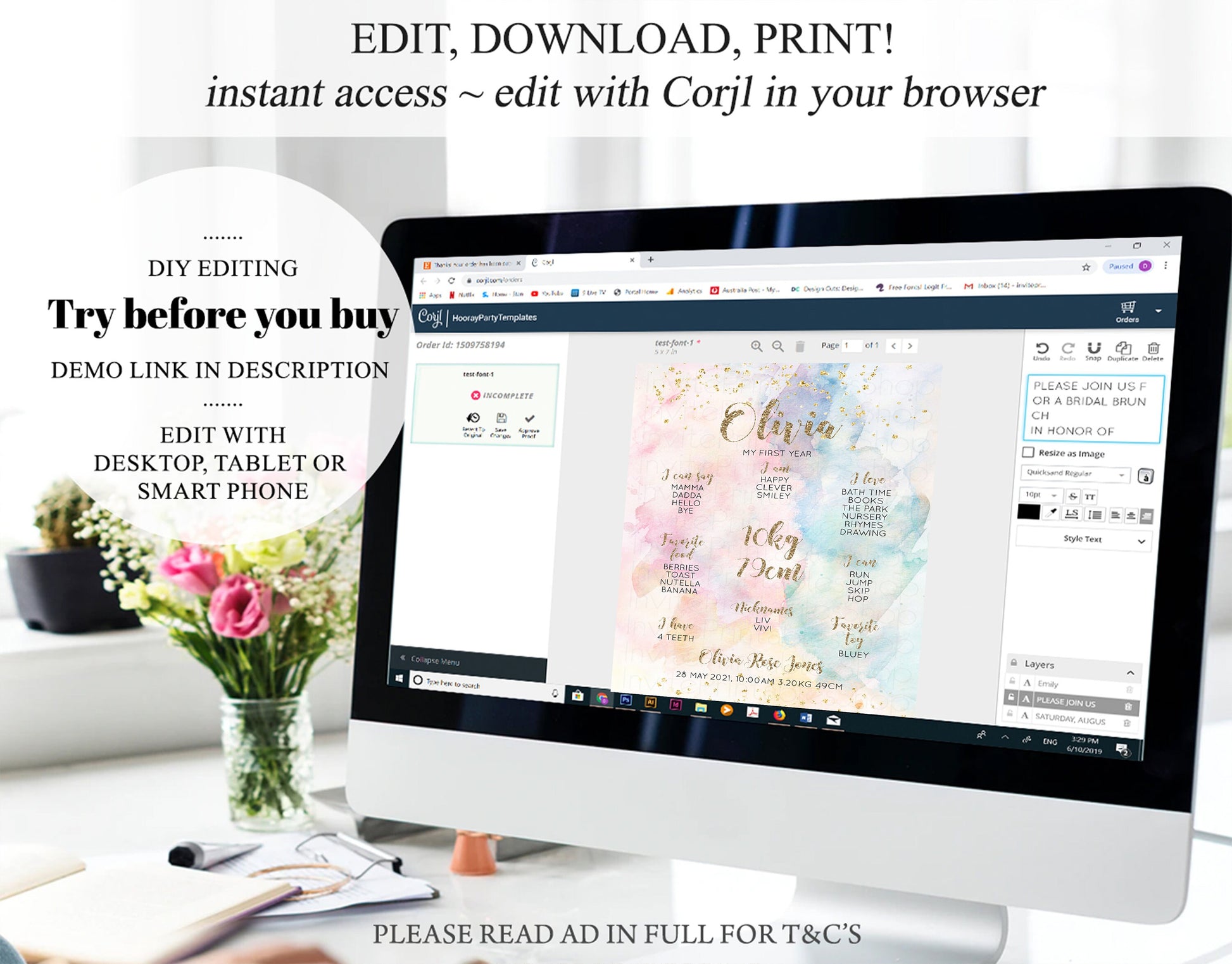 • You edit/ DIY editing. Edit online with Corjl in your browser using your desktop or smartphone