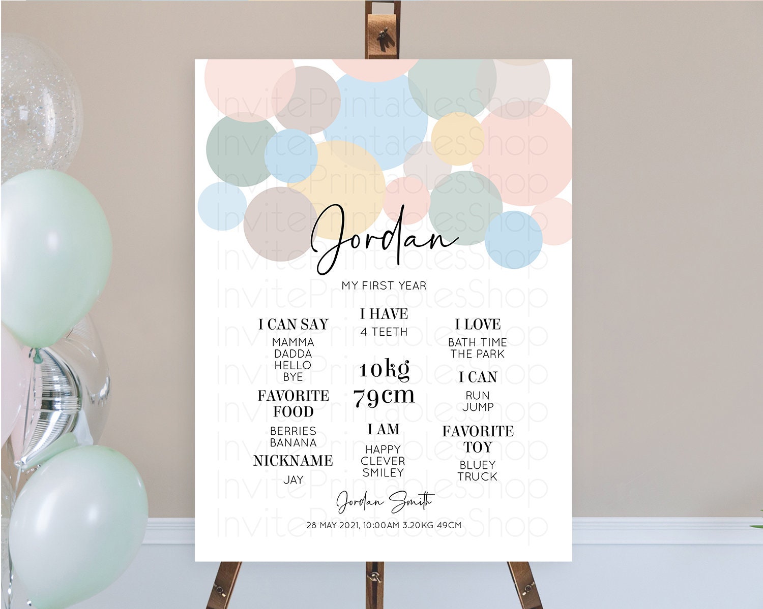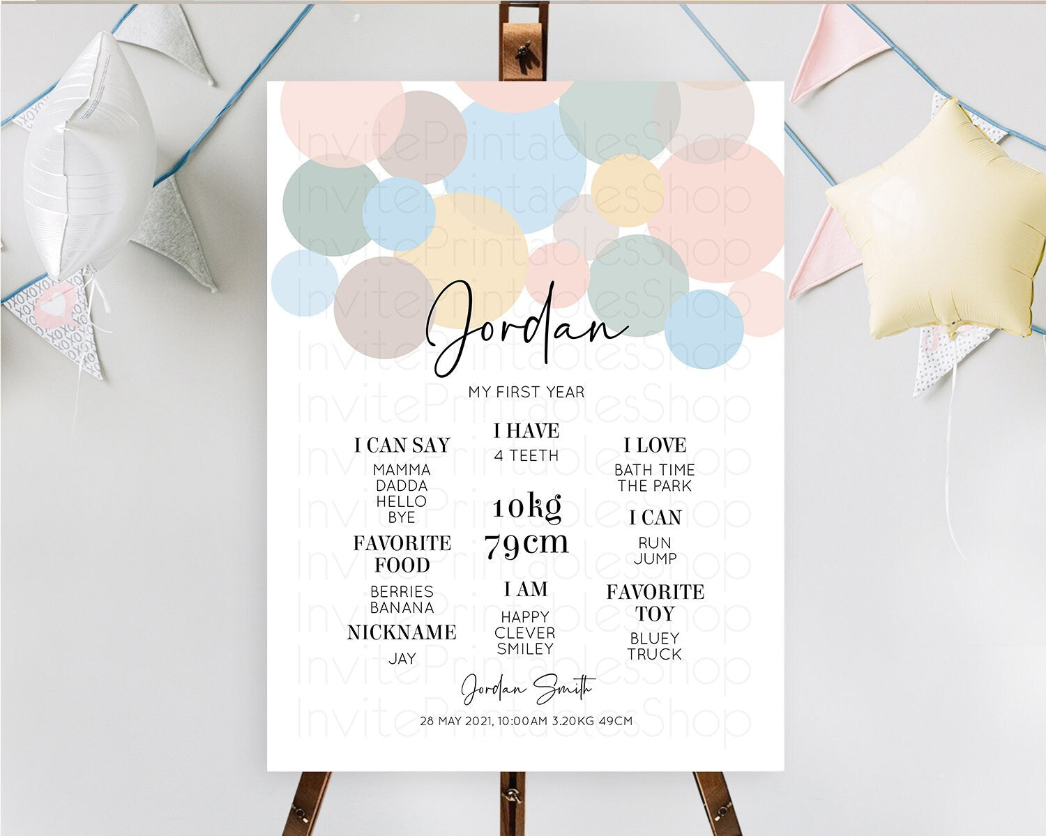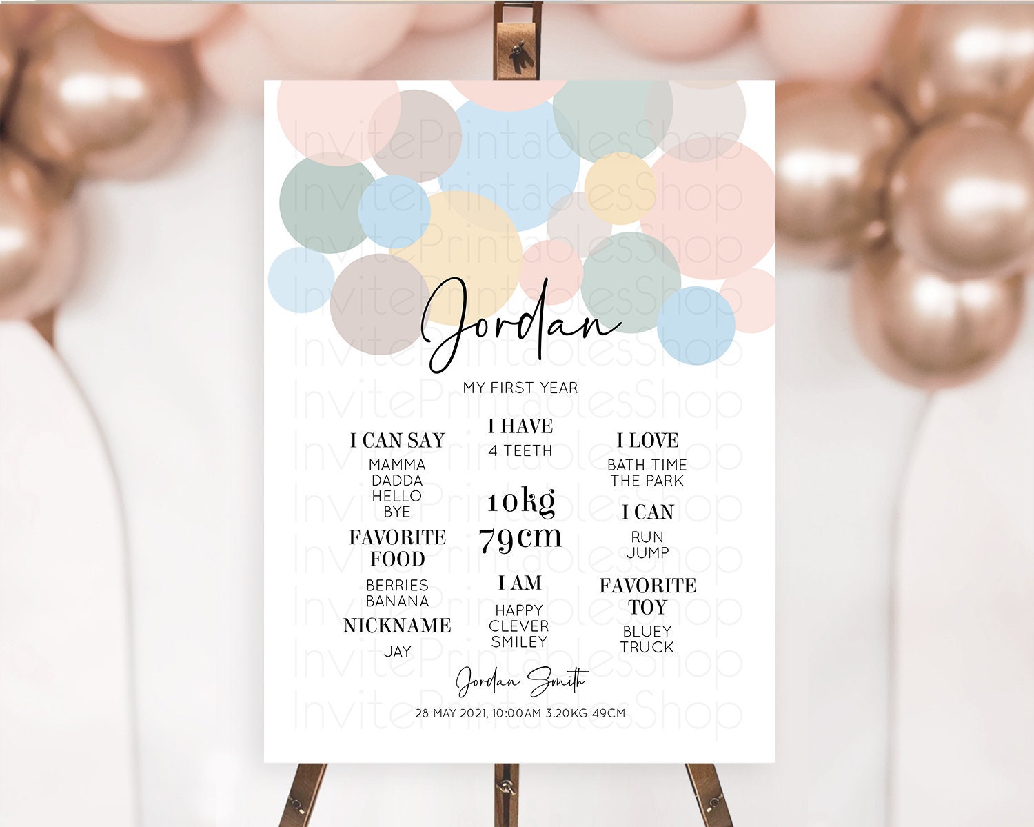 Pastel First Birthday Milestone Poster Pastel Rainbow Confetti First Birthday Milestone Board Colorful Bubbles Birthday Welcome Sign D10602