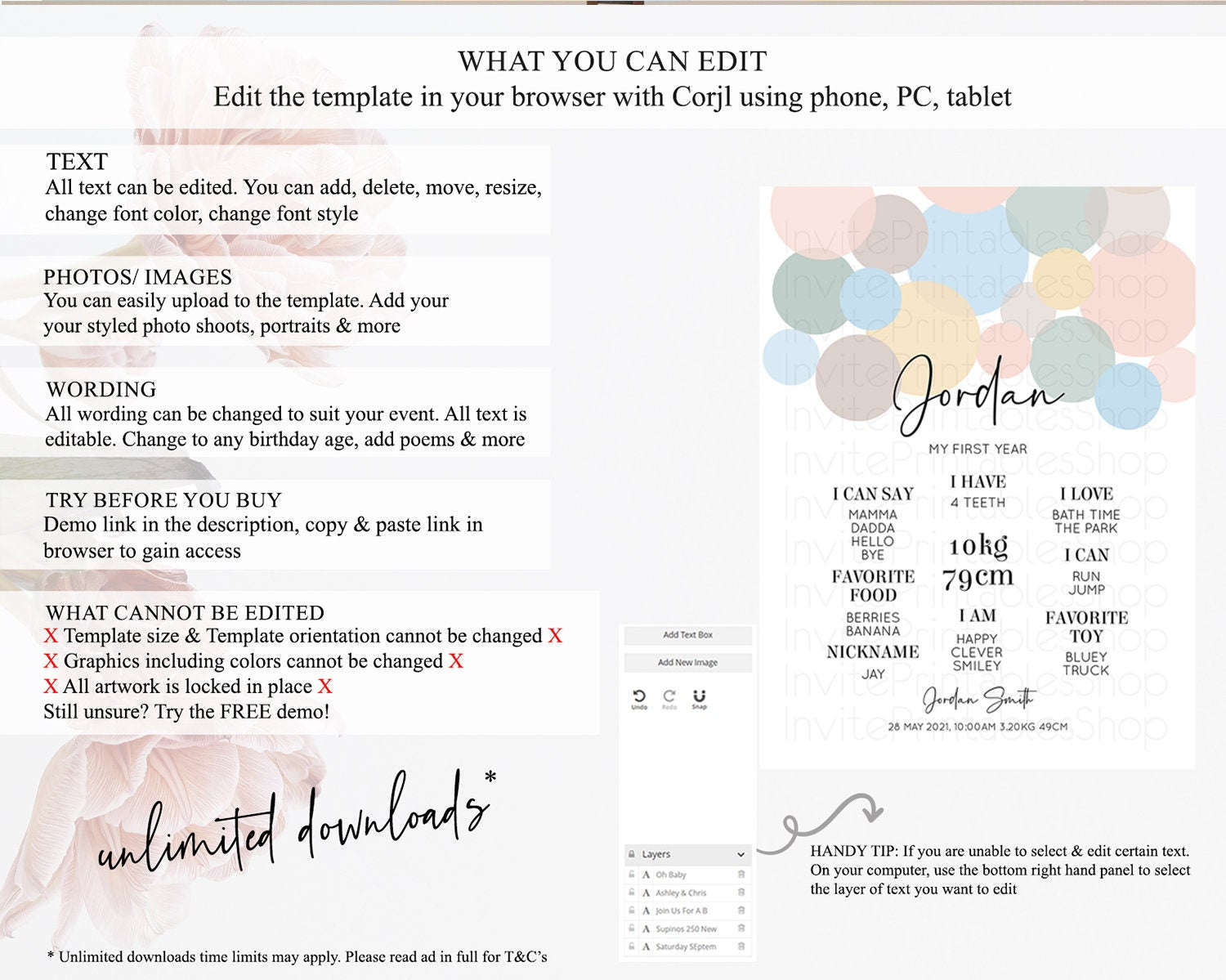 • After purchase, Corjl emails your editing link. Allow up to 15 minutes for delivery.