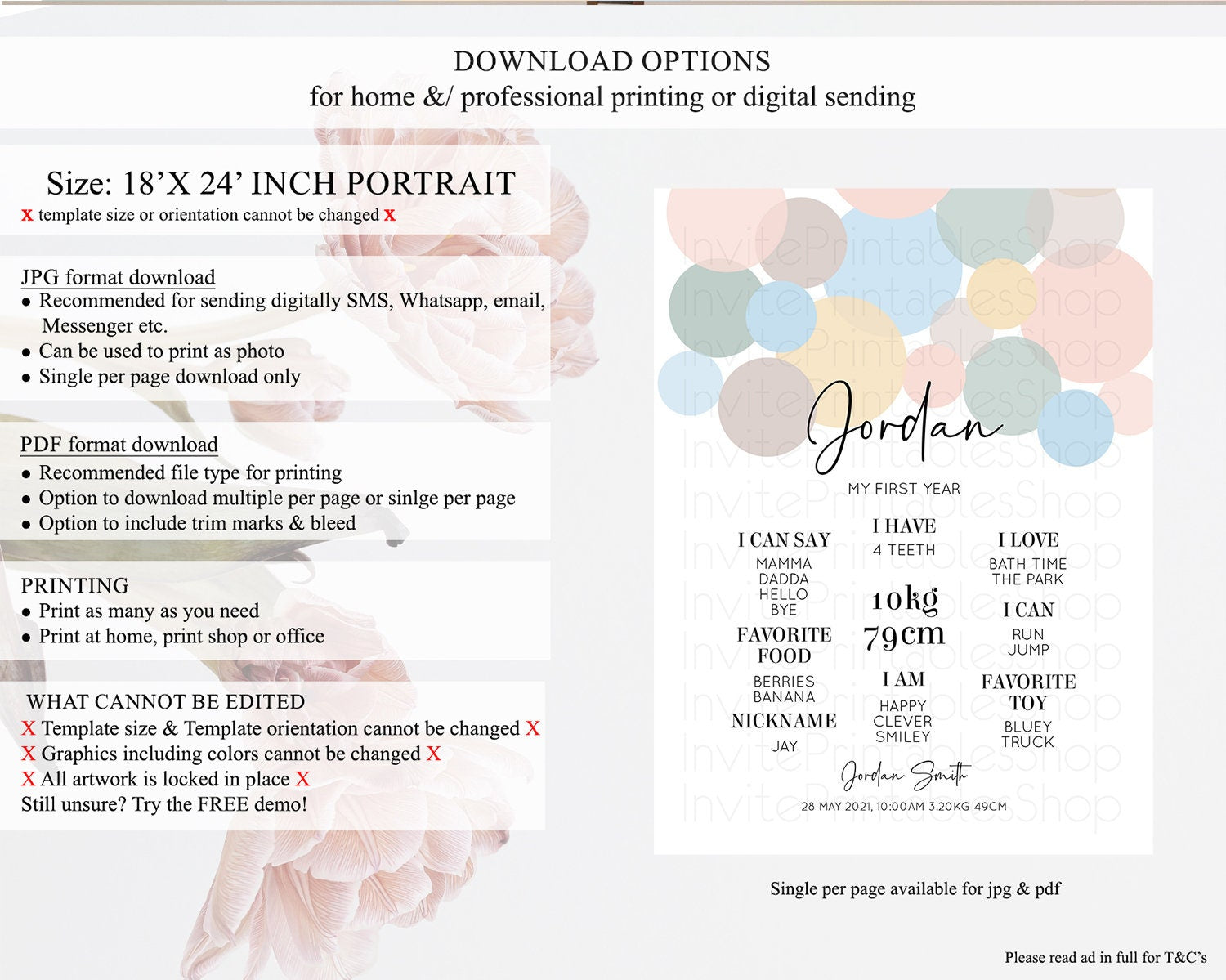 • Template size & orientation cannot be changed. Please use the demo link to confirm this product suits your needs.