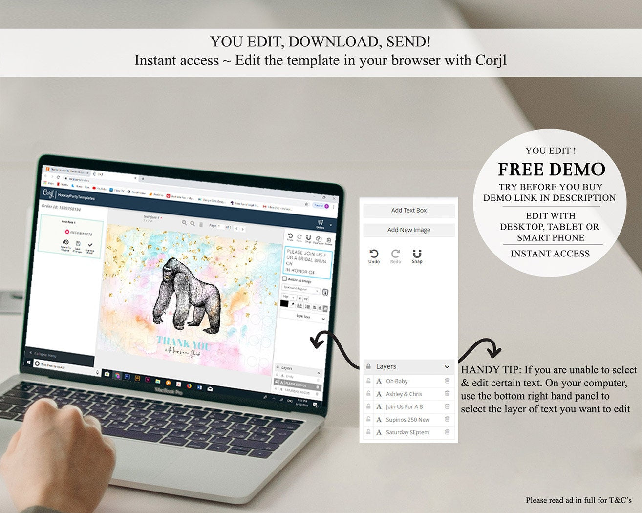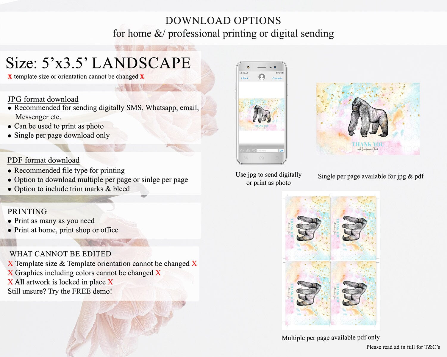 Pastel Gorilla Thank You Rainbow Gorilla Thank You Card Colorful Rainbow Birthday Thank You Pastel Teacher Thank You Card Template D10284