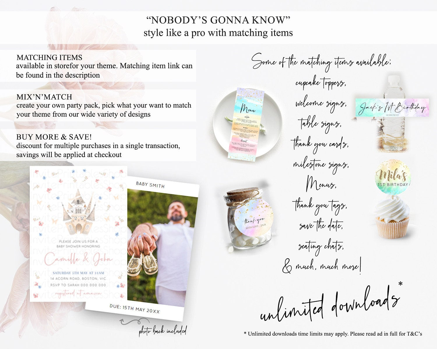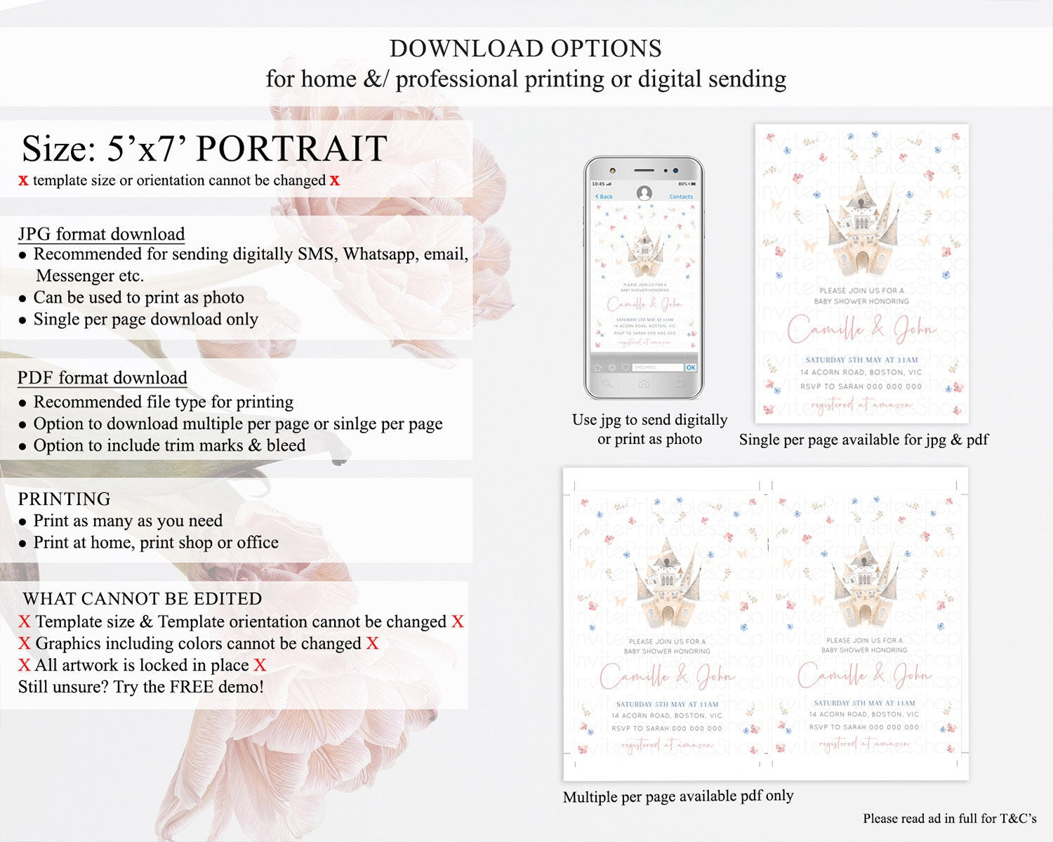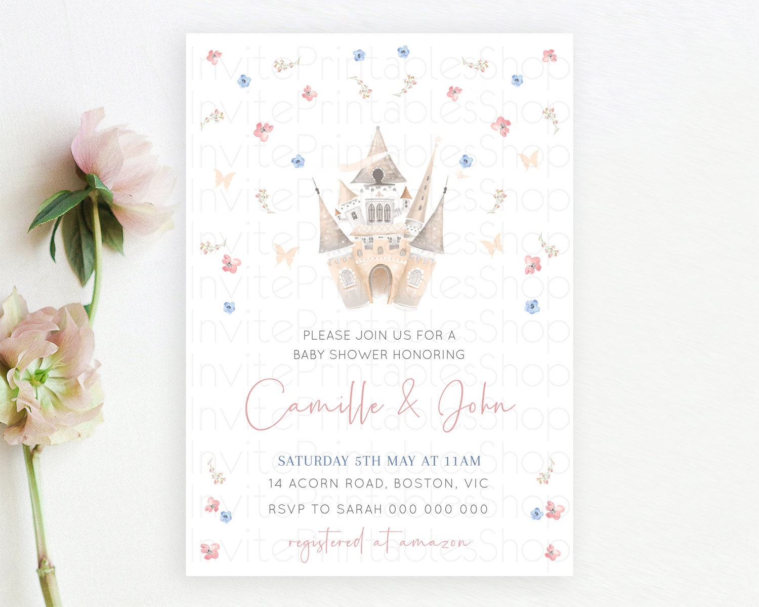 Pastel Princess Baby Shower Invitation Floral Castle Invitation Royal Baby Invite Enchanted Castle Pastel Flower Garden Baby Shower D10364