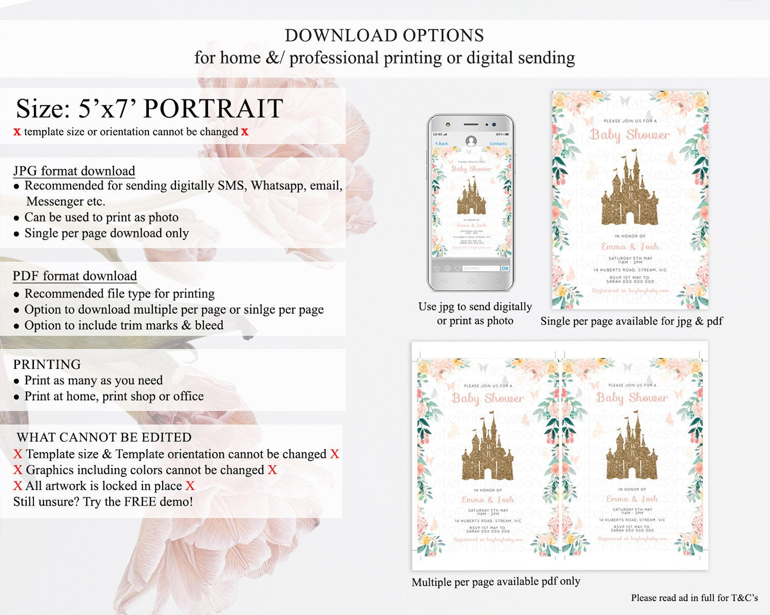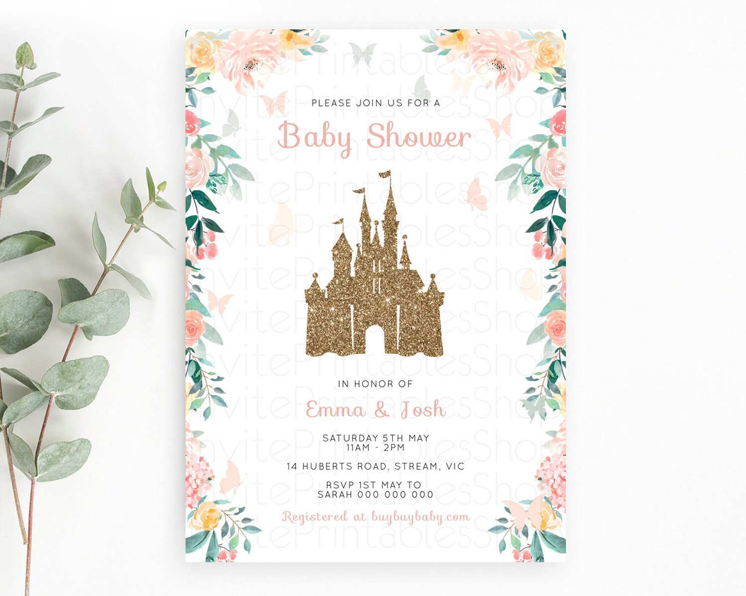 Pastel Princess Baby Shower Invitation Floral Castle Invitation Royal Baby Invite Enchanted Castle Pastel Flower Garden Baby Shower D10429