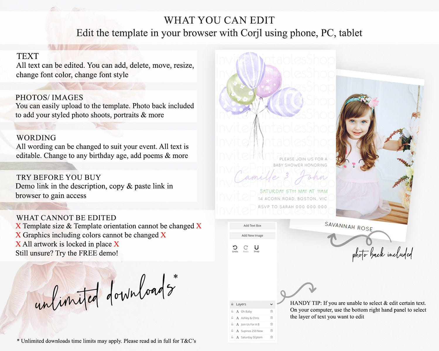 • After purchase, Corjl emails your editing link. Allow up to 15 minutes for delivery.