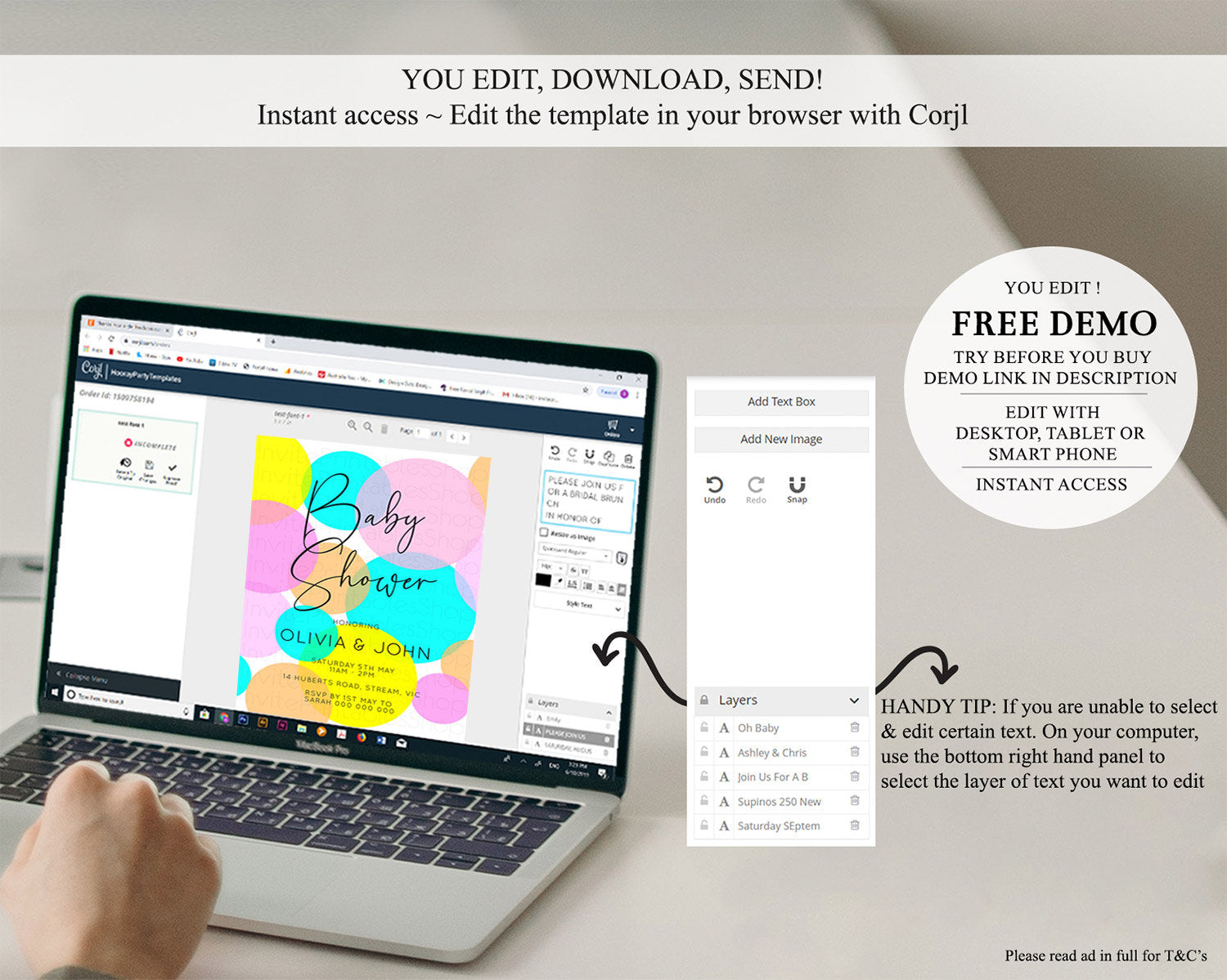 • After purchase, Corjl emails your editing link. Allow up to 15 minutes for delivery.