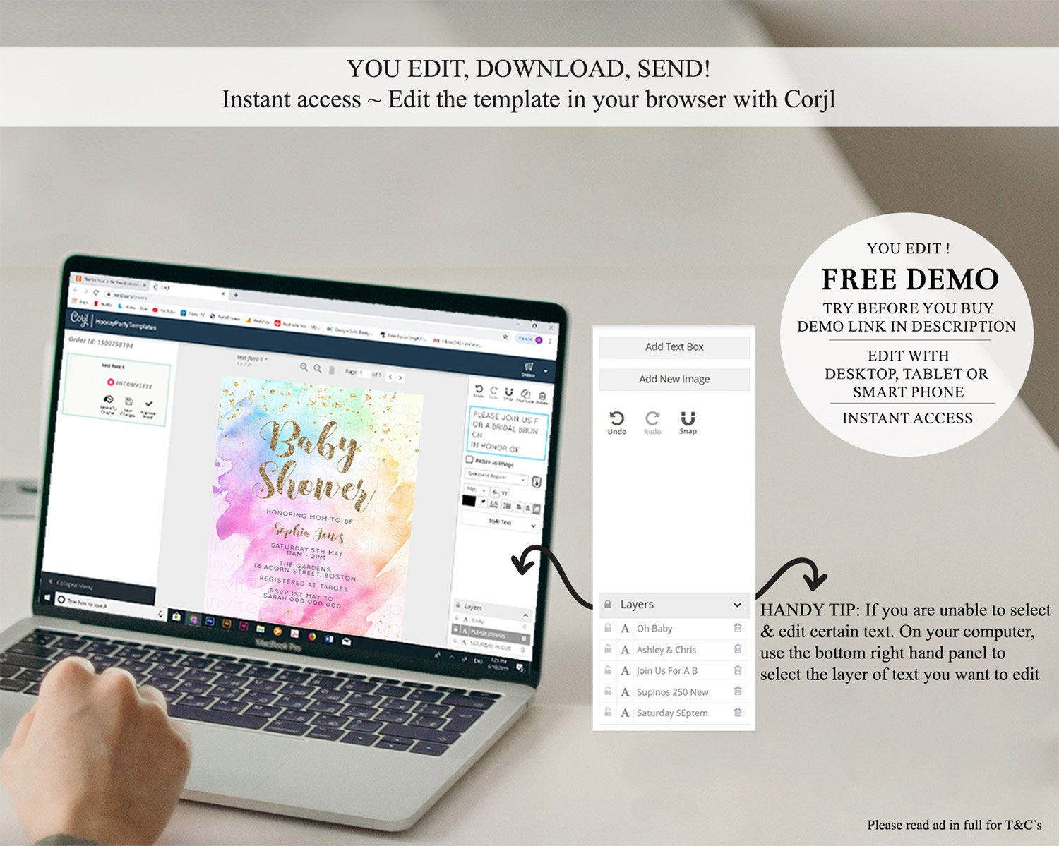• After purchase, Corjl emails your editing link. Allow up to 15 minutes for delivery.