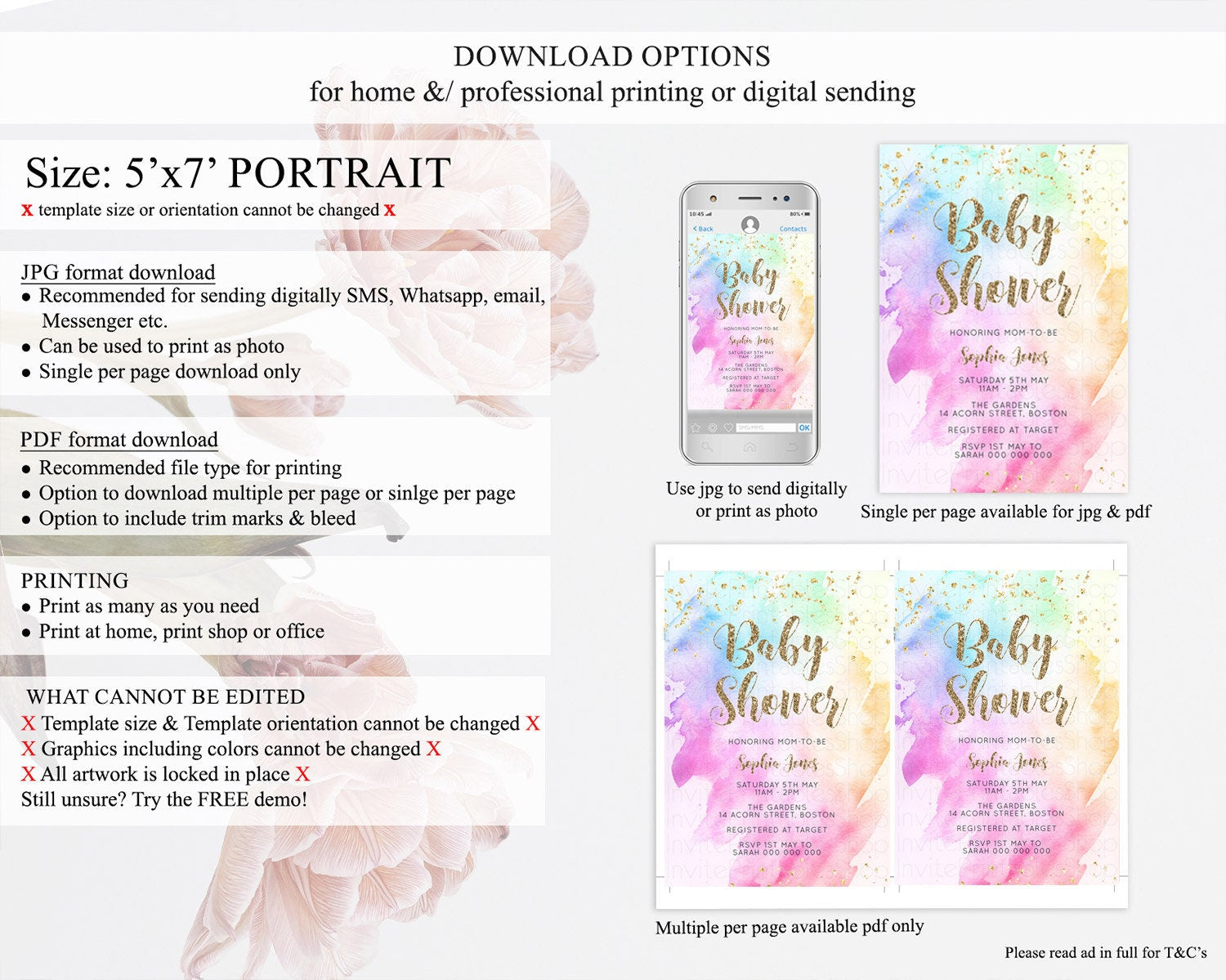 • Template size & orientation cannot be changed. Please use the demo link to confirm this product suits your needs.
