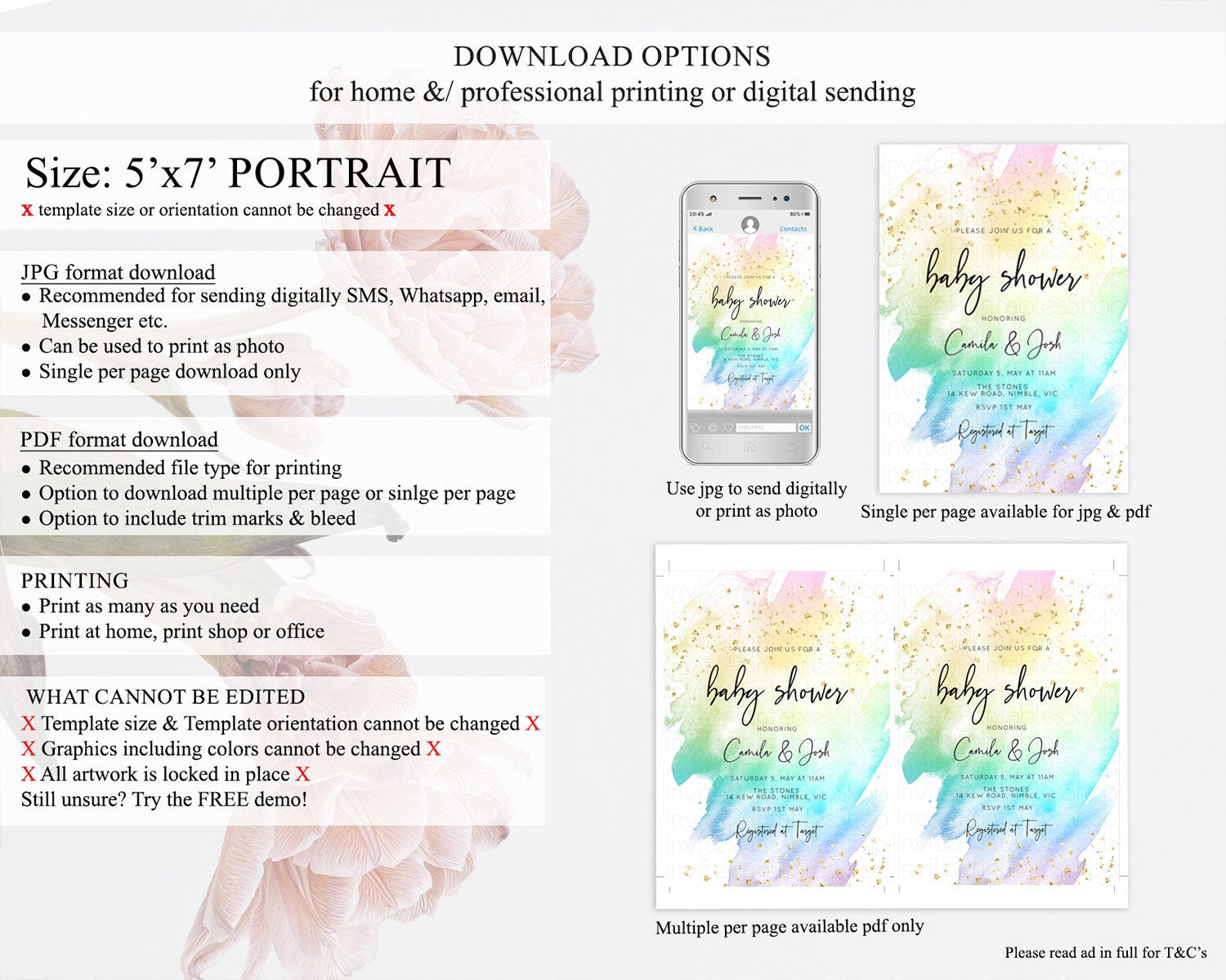 • Template size & orientation cannot be changed. Please use the demo link to confirm this product suits your needs.