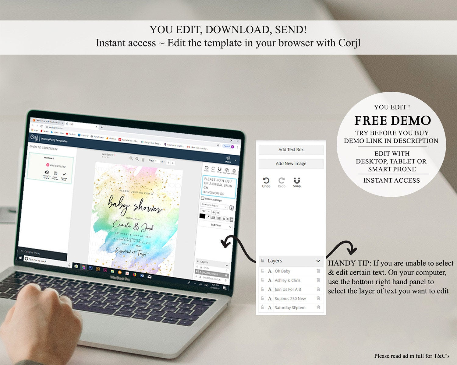 • After purchase, Corjl emails your editing link. Allow up to 15 minutes for delivery.
