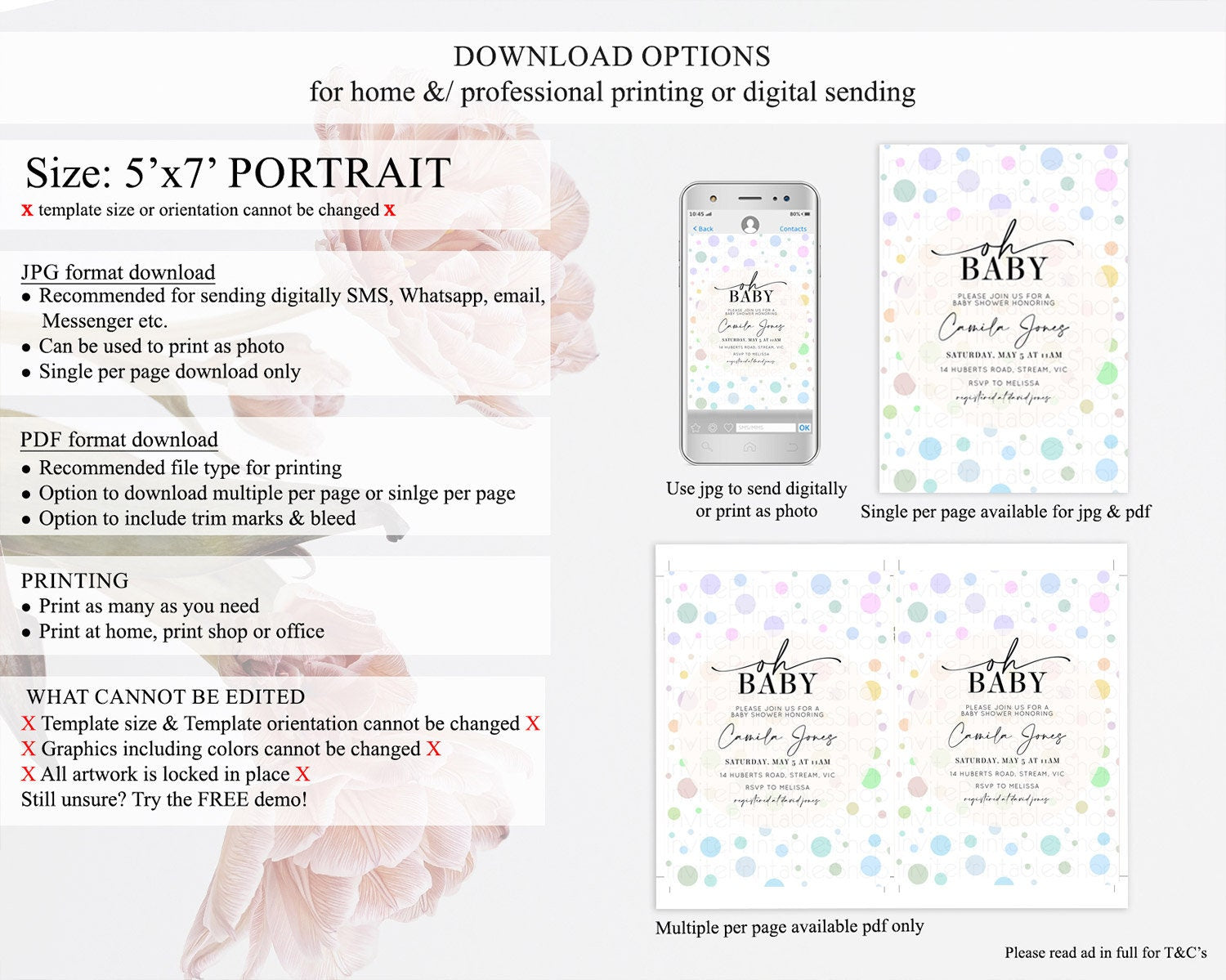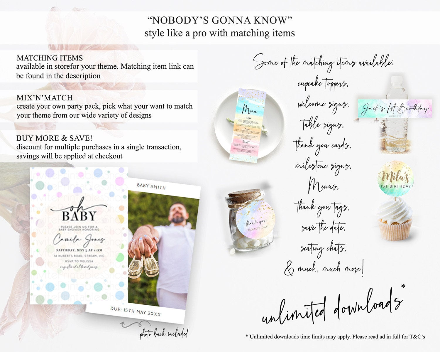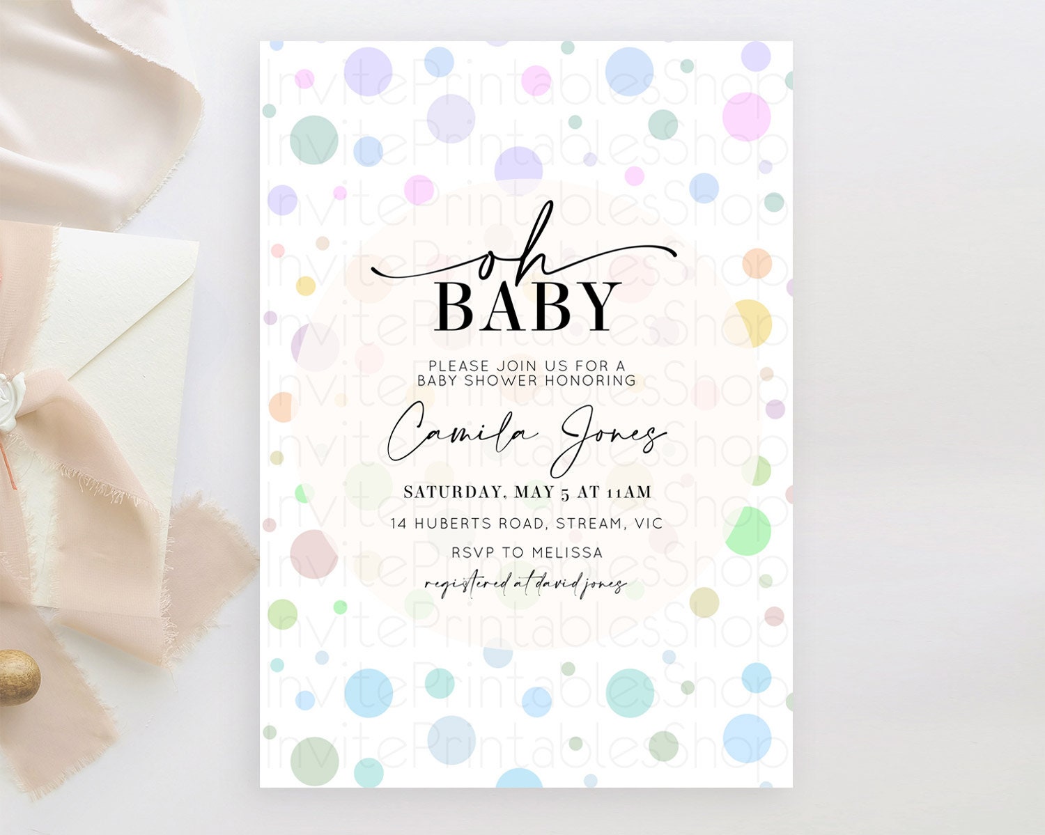 Pastel Rainbow Baby Shower Invitation Pastel Confetti Invitation Sprinkles Bubbles Invitation Colorful Rainbow Confetti Theme D10135