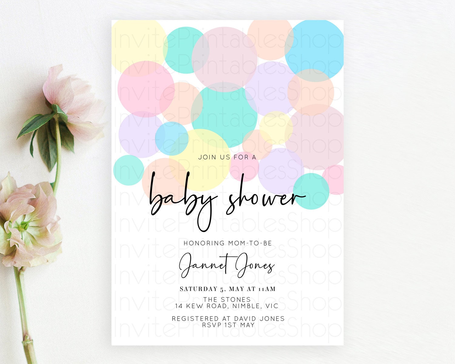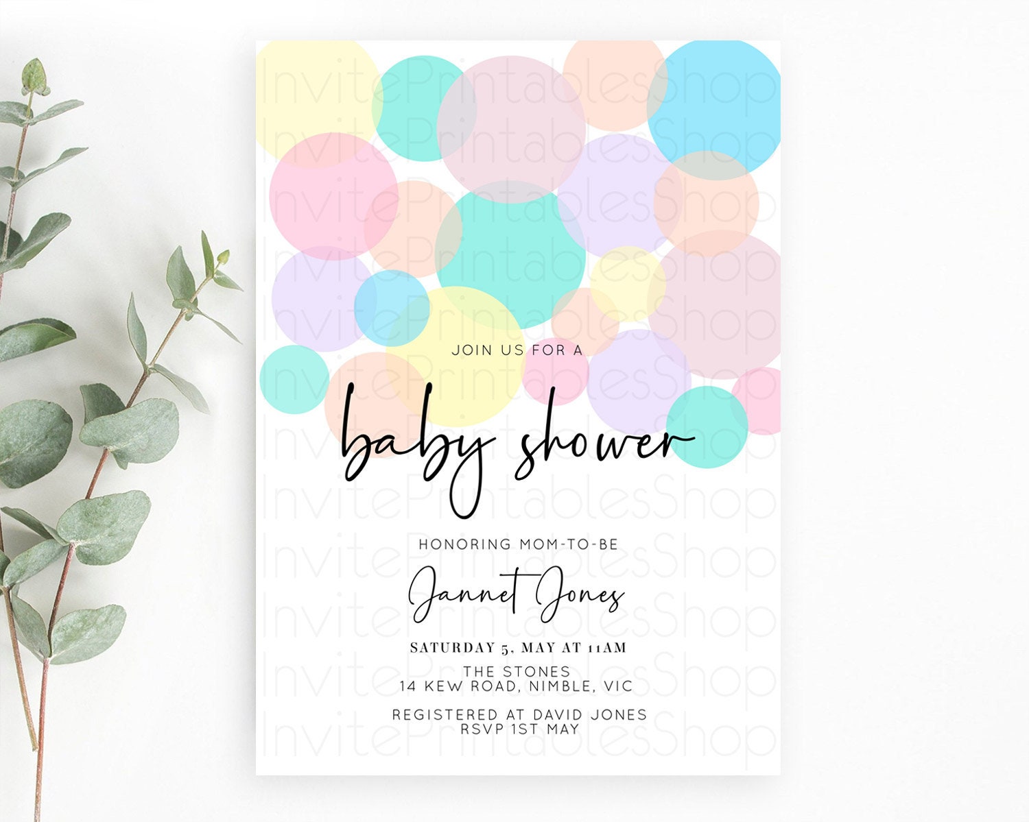 Pastel Rainbow Baby Shower Invitation Pastel Confetti Invitation Sprinkles Bubbles Invitation Colorful Rainbow Confetti Theme D10223
