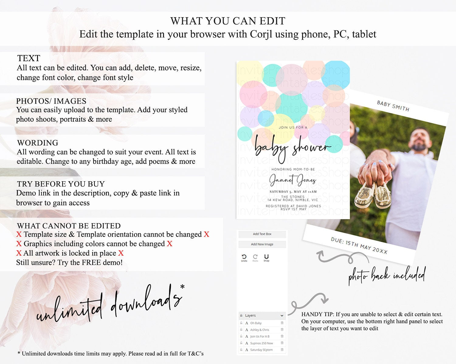 • After purchase, Corjl emails your editing link. Allow up to 15 minutes for delivery.