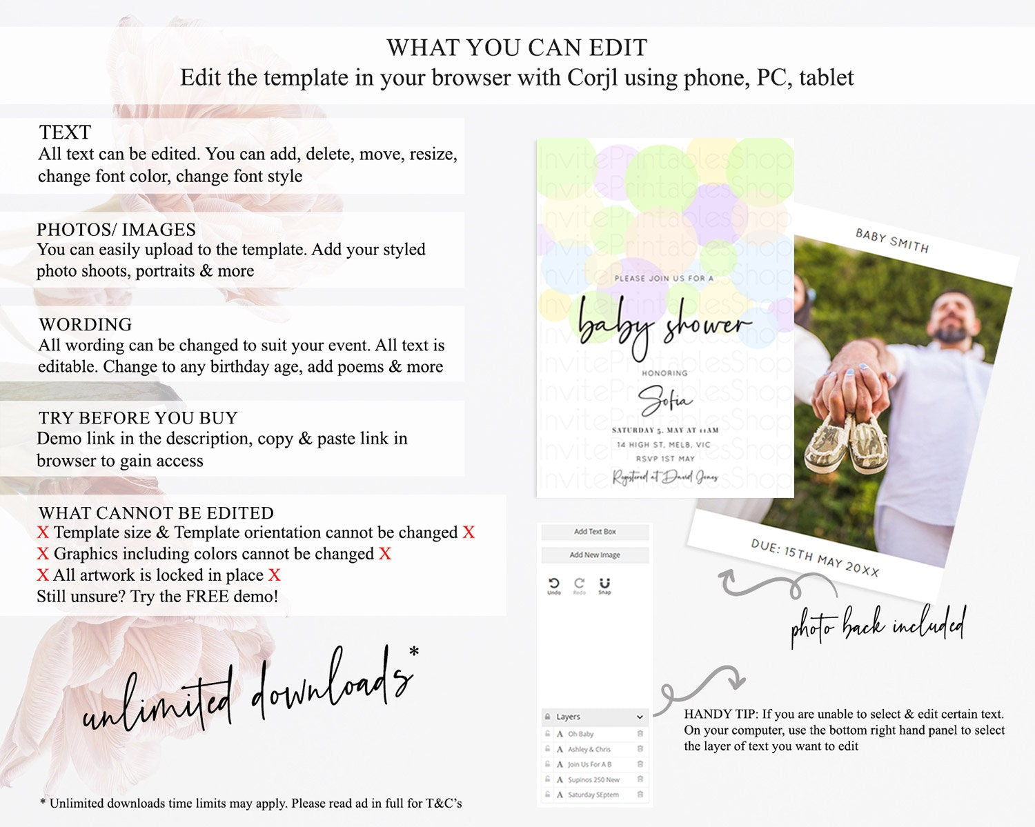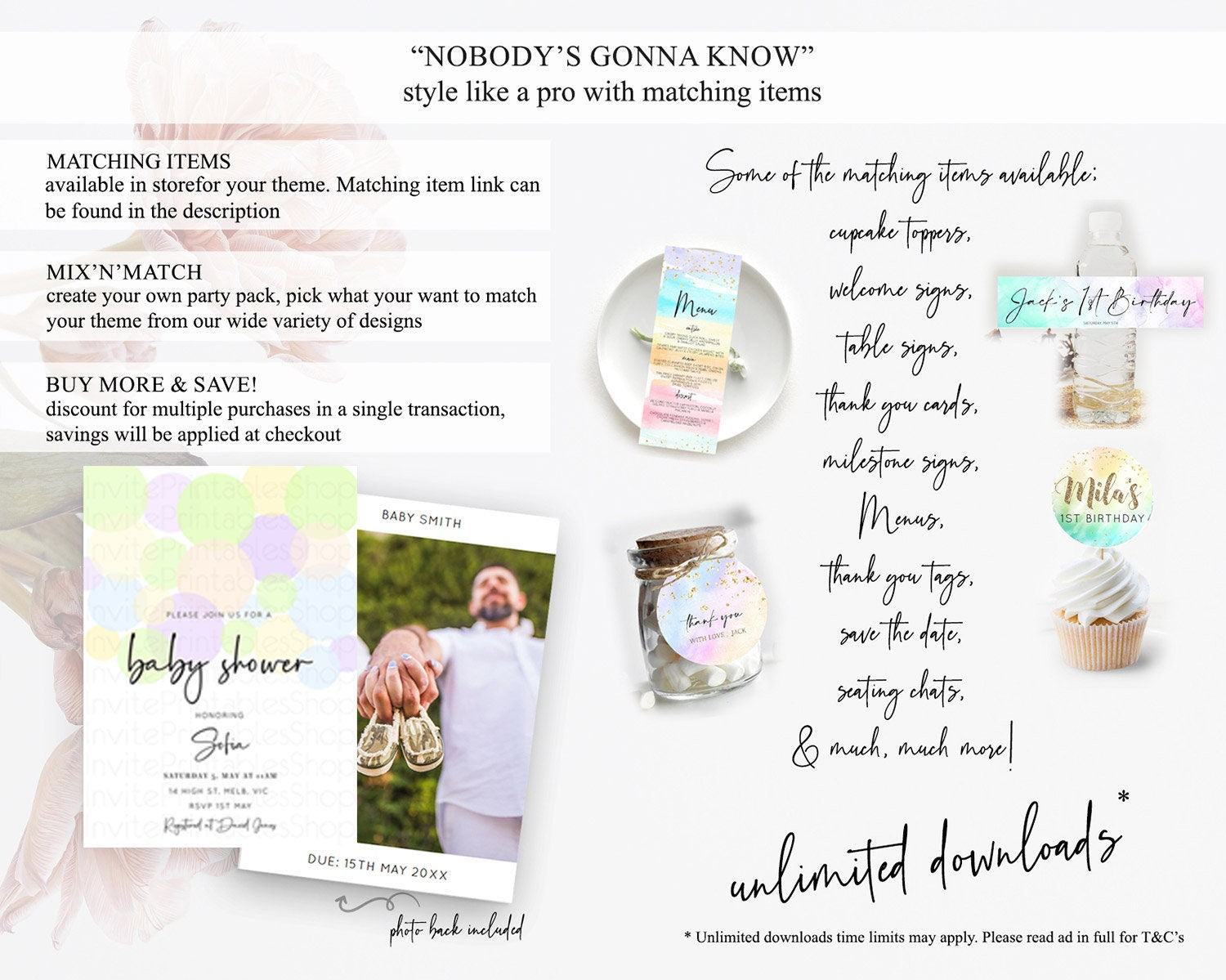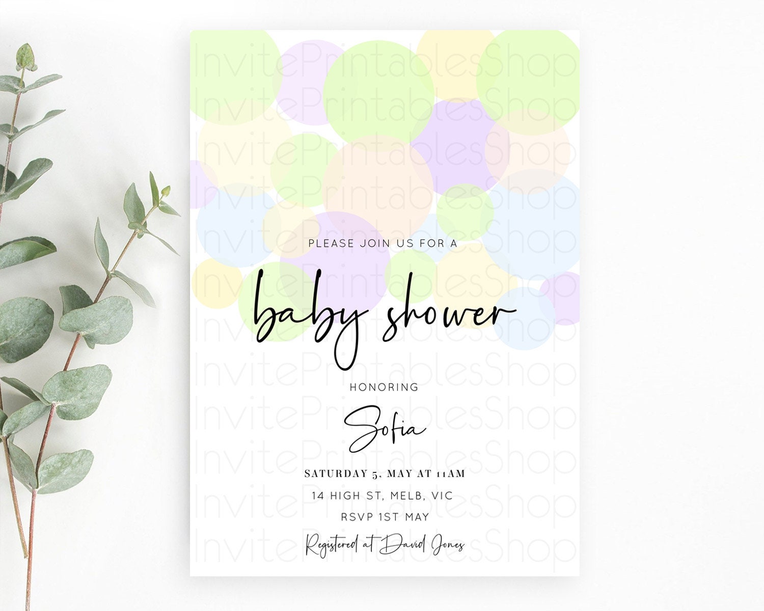 Pastel Rainbow Baby Shower Invitation Pastel Confetti Invitation Sprinkles Bubbles Invitation Colorful Rainbow Confetti Theme D10228