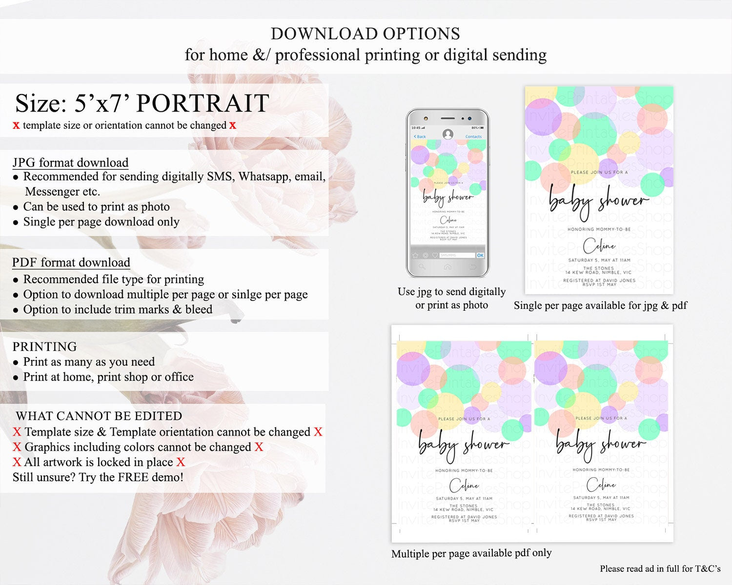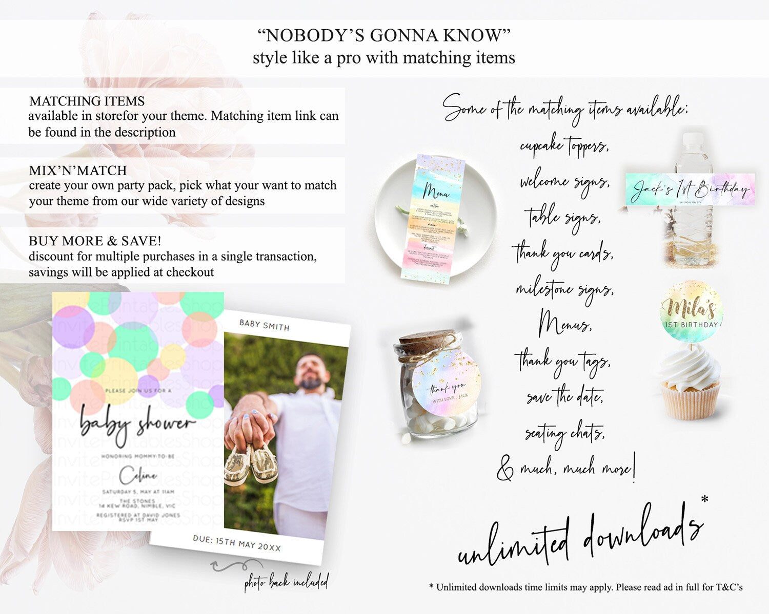 Pastel Rainbow Baby Shower Invitation Pastel Confetti Invitation Sprinkles Bubbles Invitation Colorful Rainbow Confetti Theme D10380