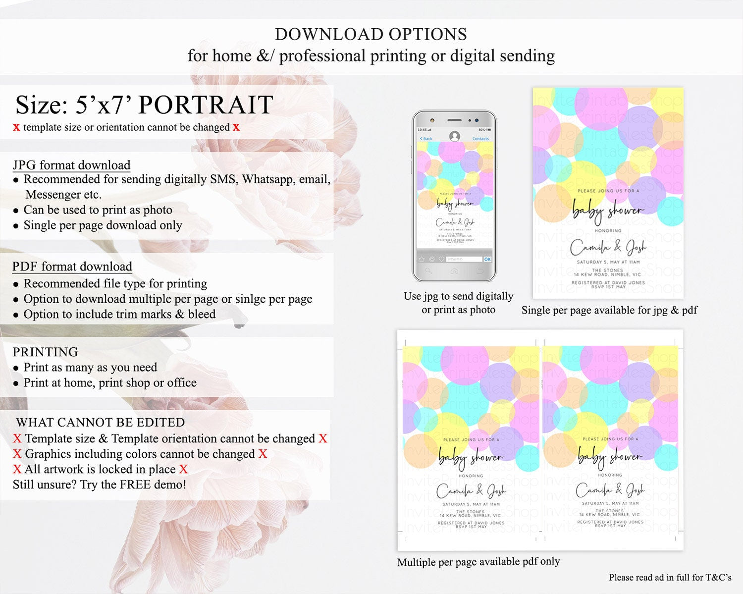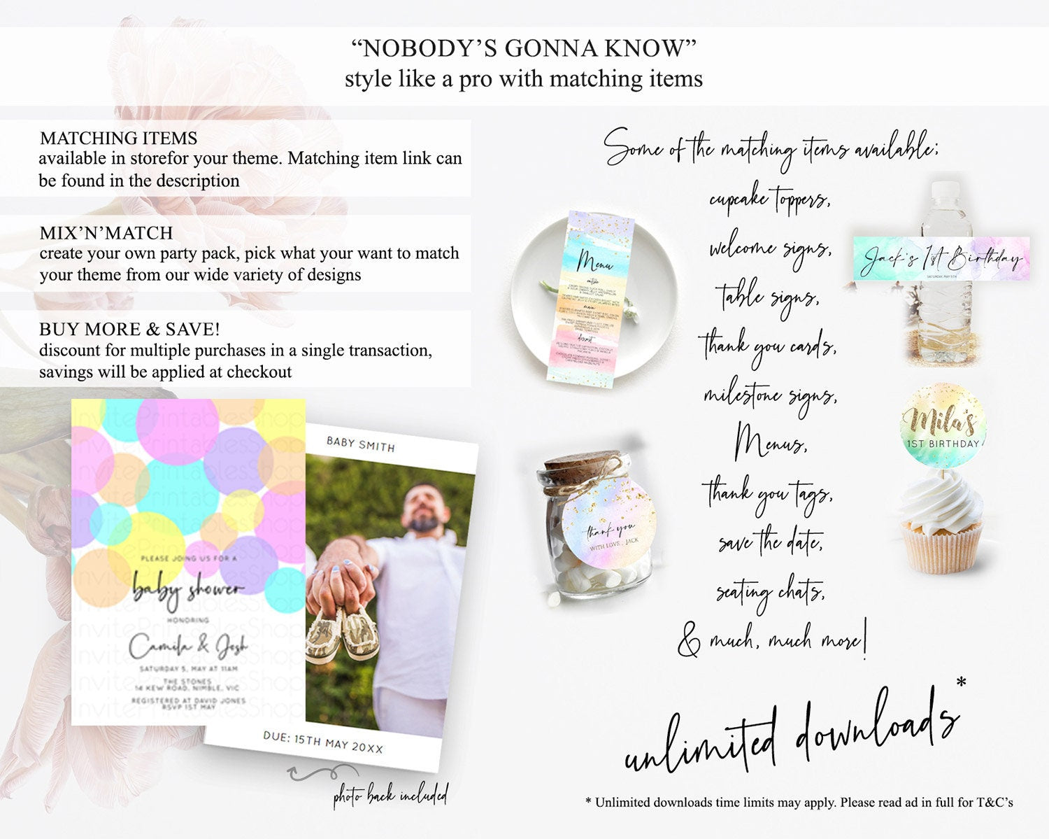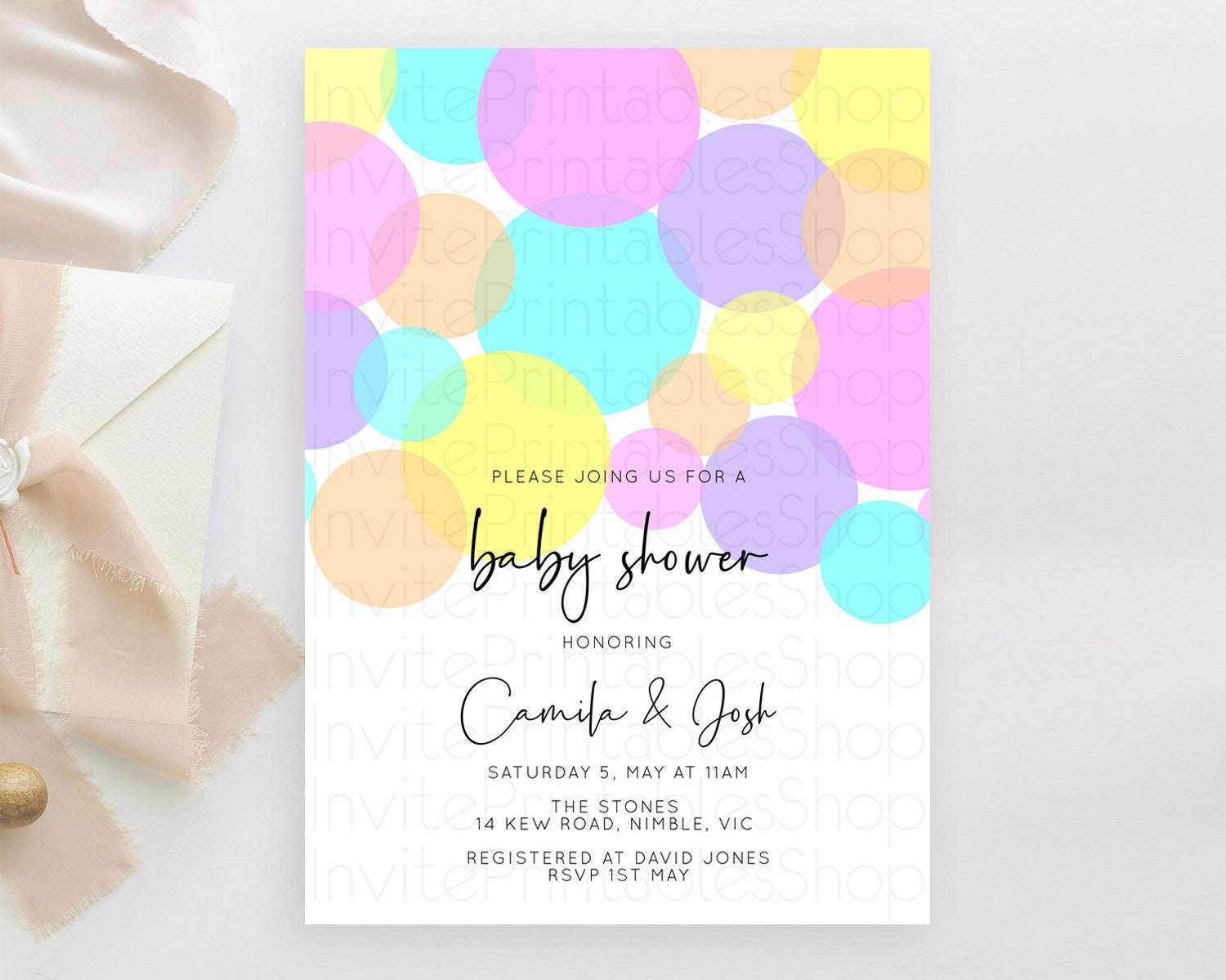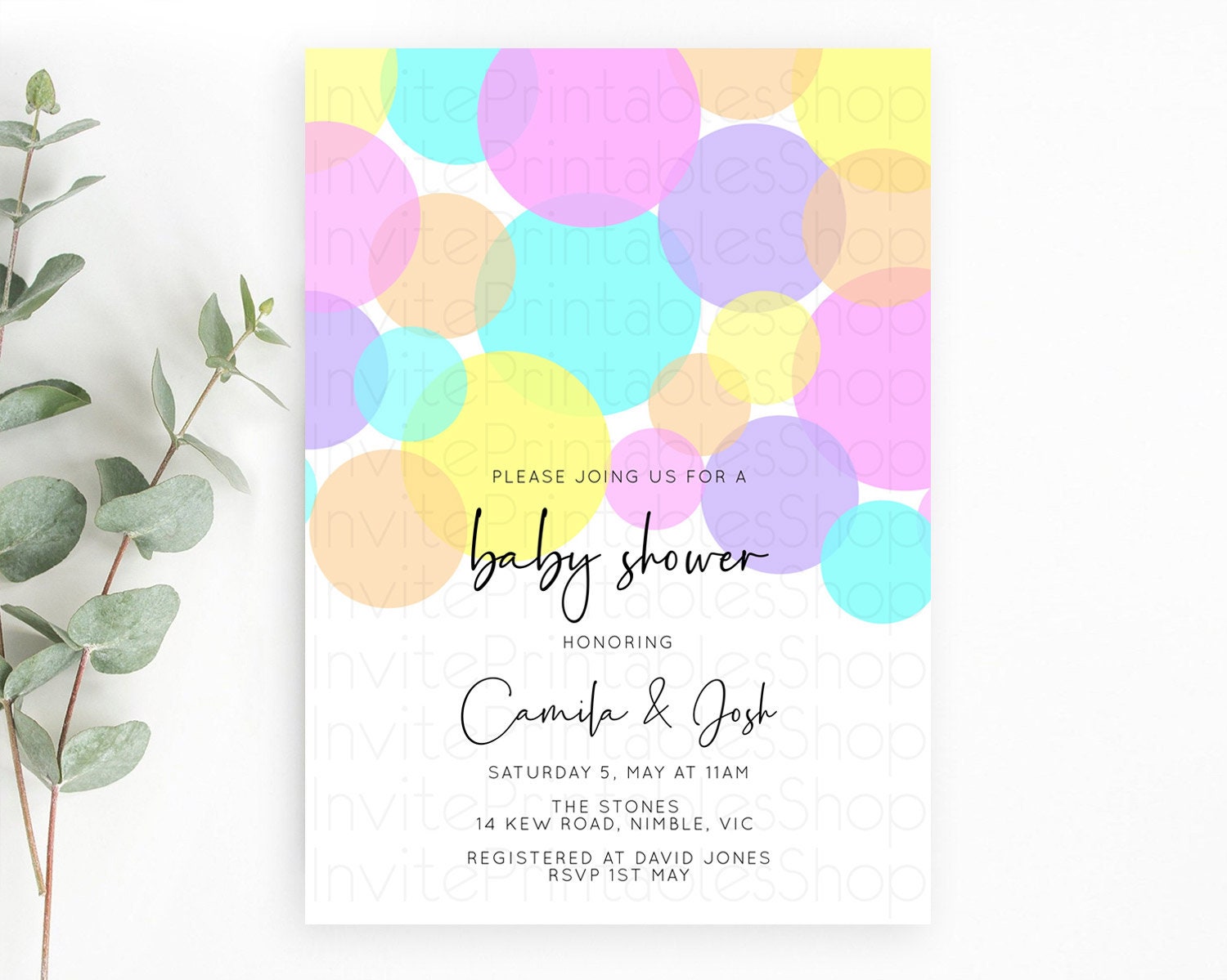 Pastel Rainbow Baby Shower Invitation Pastel Confetti Invitation Sprinkles Bubbles Invitation Colorful Rainbow Confetti Theme D10406