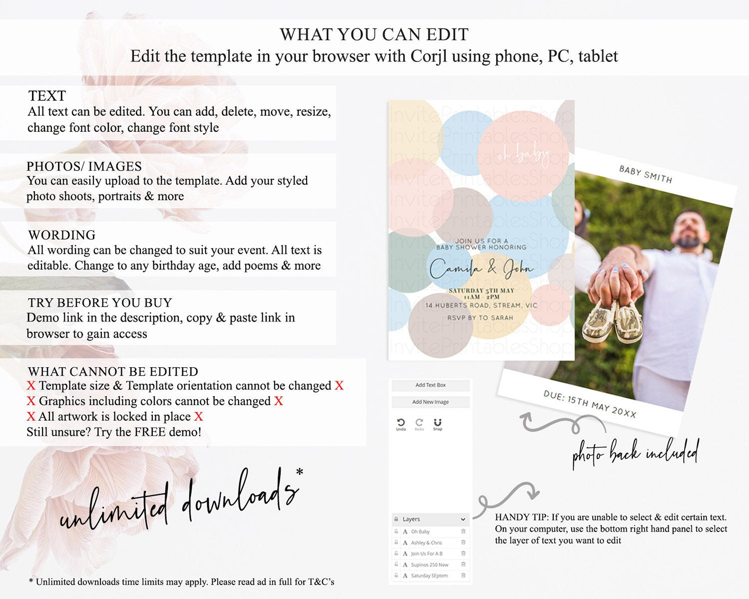 Pastel Rainbow Baby Shower Invitation Pastel Confetti Invitation Sprinkles Bubbles Invitation Colorful Rainbow Confetti Theme D10602