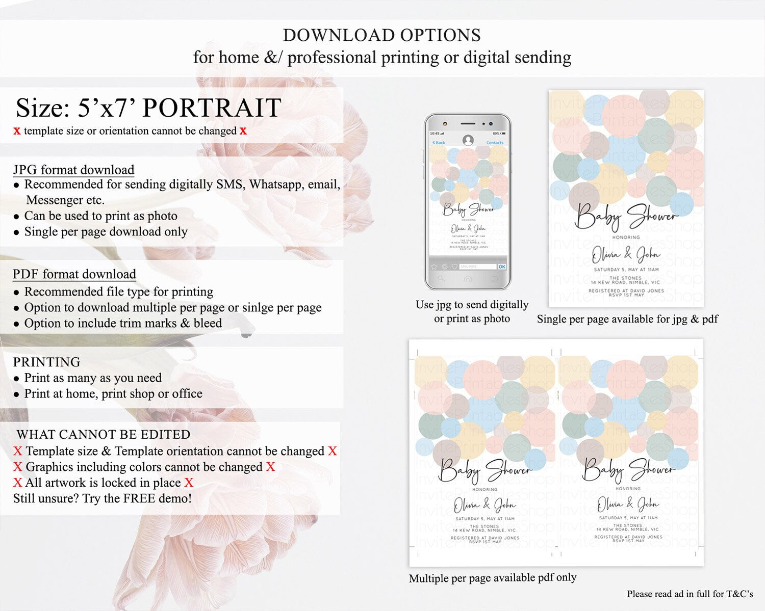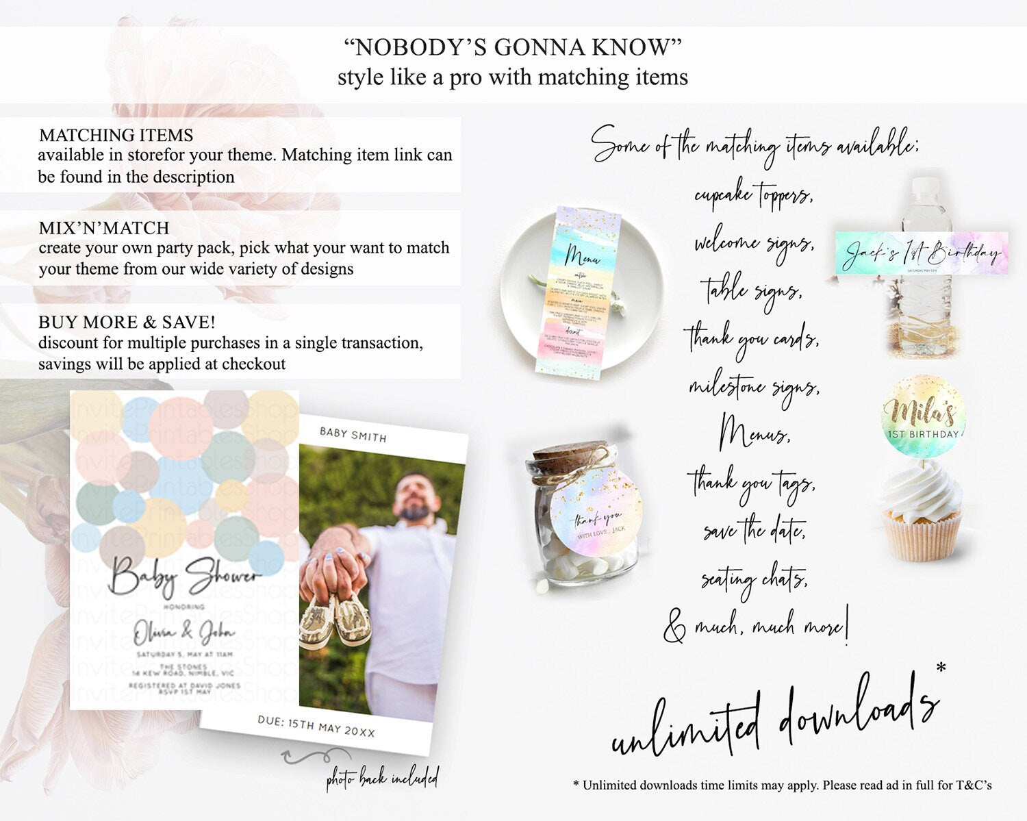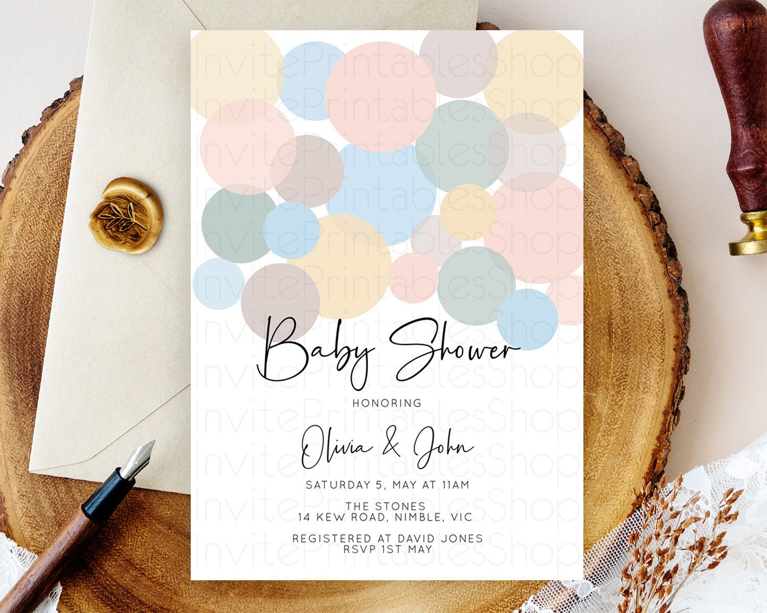 Pastel Rainbow Baby Shower Invitation Pastel Confetti Invitation Sprinkles Bubbles Invitation Colorful Rainbow Confetti Theme D10602