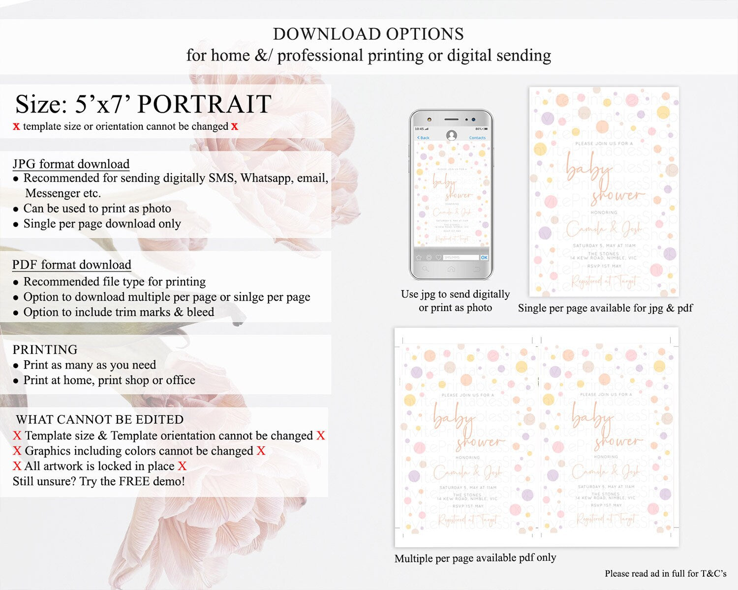 • Template size & orientation cannot be changed. Please use the demo link to confirm this product suits your needs.