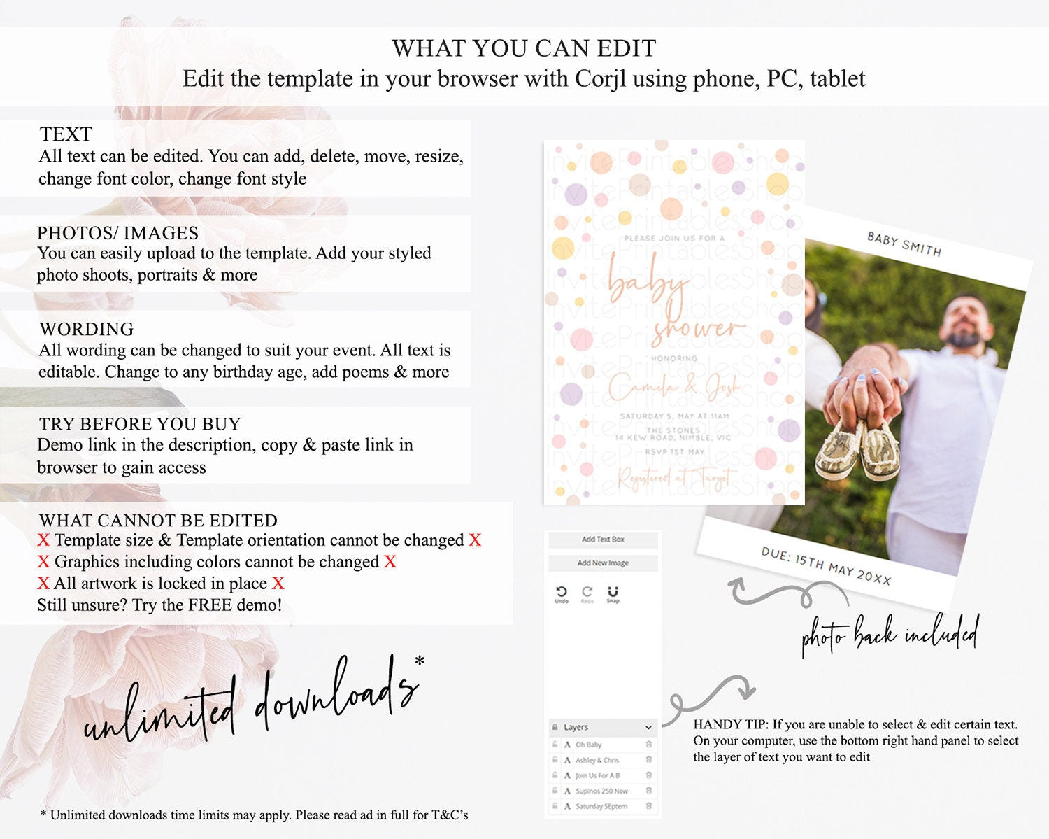 • After purchase, Corjl emails your editing link. Allow up to 15 minutes for delivery.