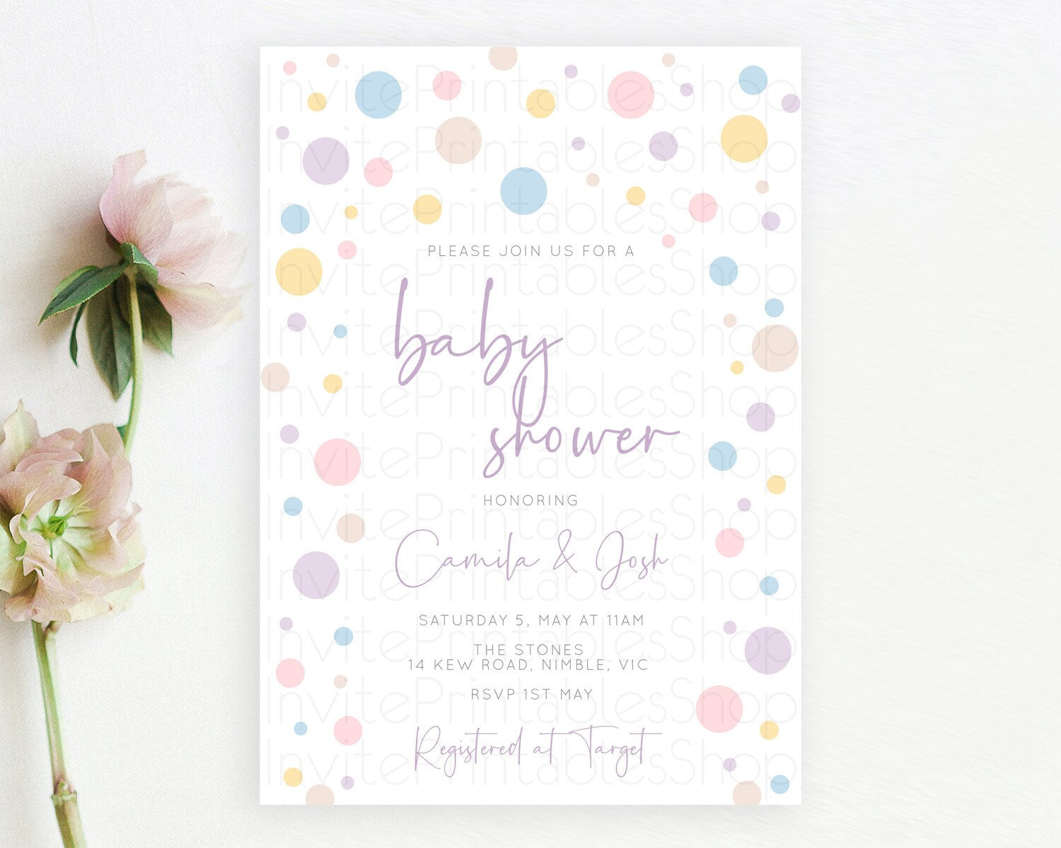 Pastel Rainbow Baby Shower Invitation Pastel Confetti Invitation Sprinkles Bubbles Invitation Colorful Rainbow Confetti Theme D10759