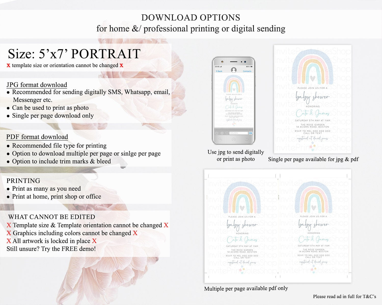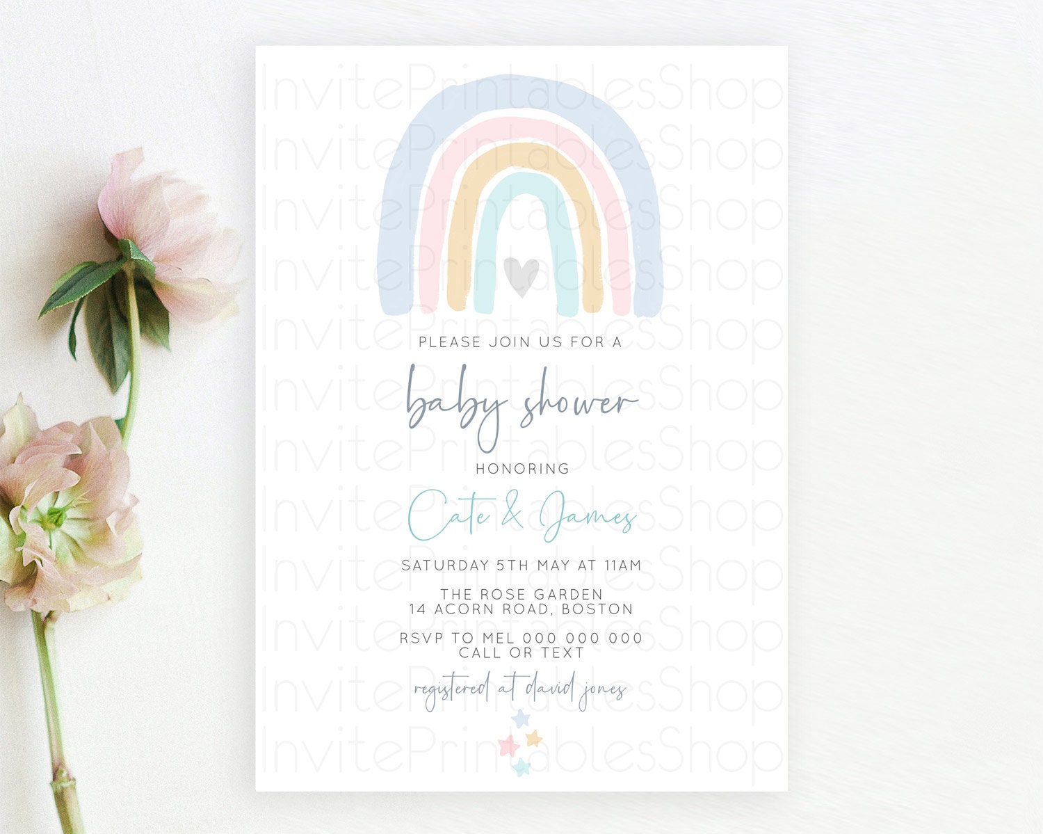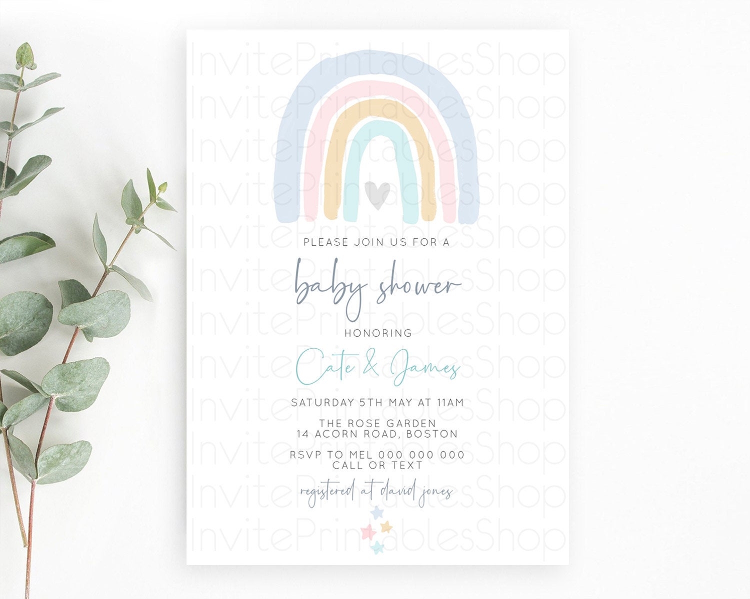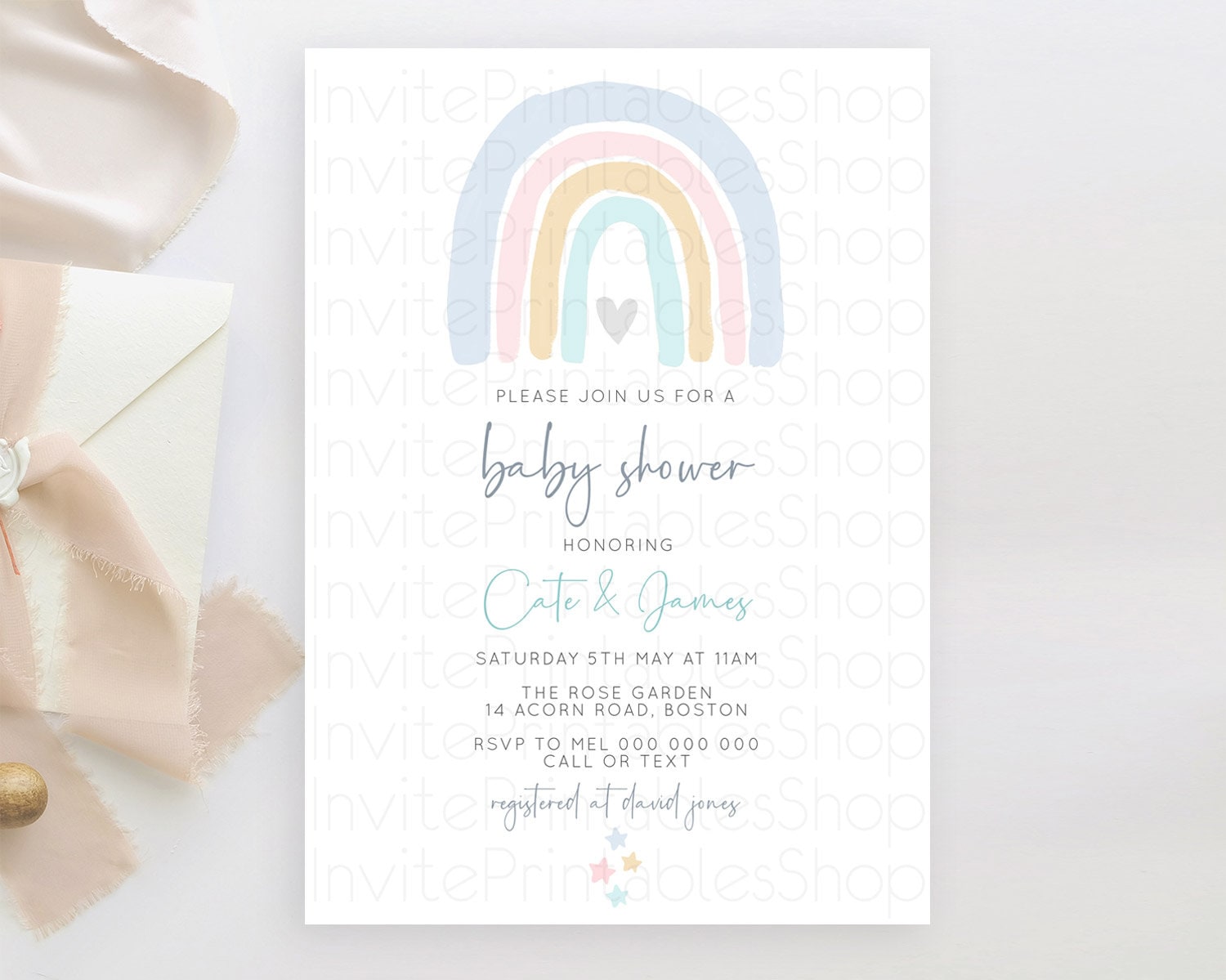 Pastel Rainbow Baby Shower Invitation Pastel Rainbow Invitation Rainbow Baby Invitation Pastel Invitation Boho Rainbow Invitation D10214