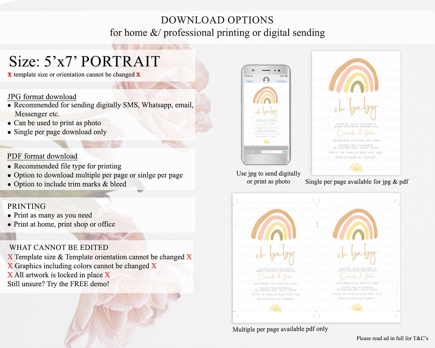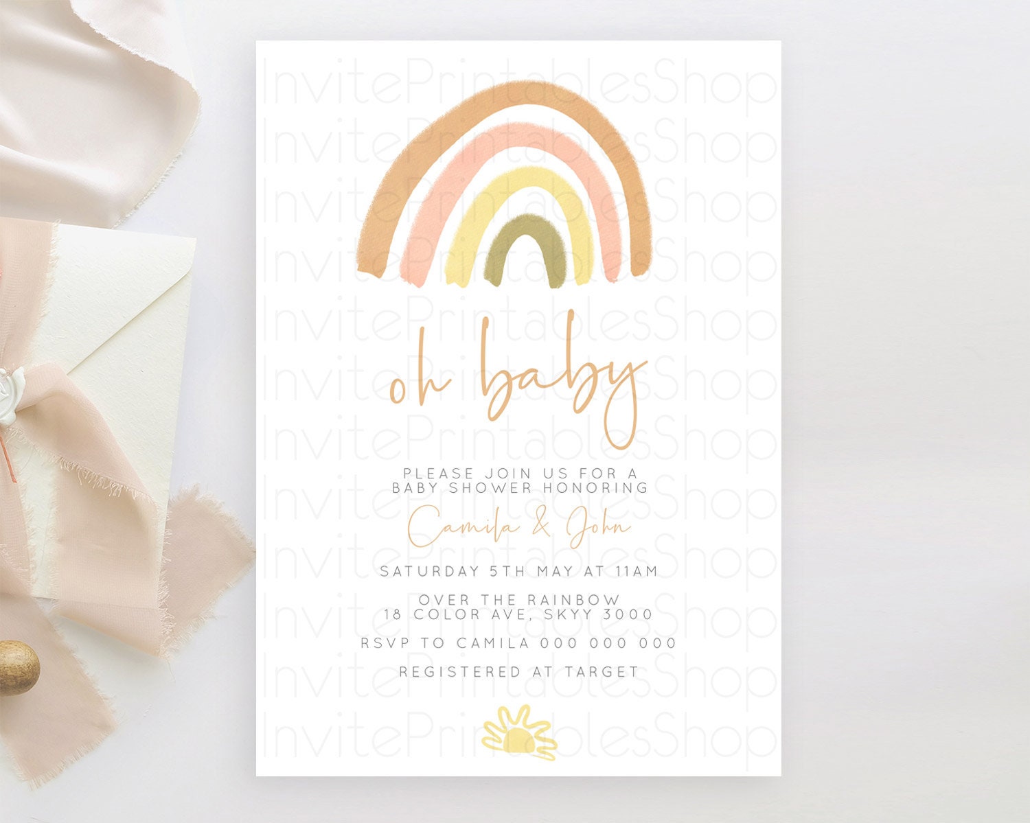 Pastel Rainbow Baby Shower Invitation Pastel Rainbow Invitation Rainbow Baby Invitation Pastel Invitation Boho Rainbow Invitation D10684